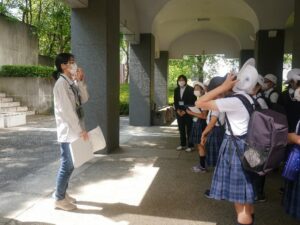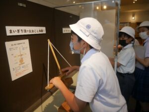 学年全体で映像を見た後は、各クラスに別れて、体験コーナーや展示コーナー、庭園を見て回りました。体験コーナーでは、2種類の火起こし体験や、石に穴を開ける体験、土器のパズル、縄文土器の模様つけなど、いろいろなコーナーを自由にまわって体験しました。