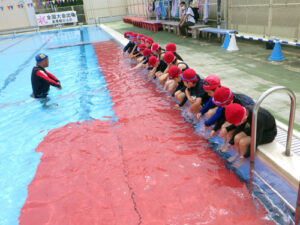 週が変わって、一昨日・昨日と連続でプールに入ることができました。火曜日の朝、学校に来て子どもたちが「おはよう!」よりも前に言ってきたのは「先生、今日は入れる?」でした。「入れるよ。」というと、「やった~!」という歓声が挙がりました。