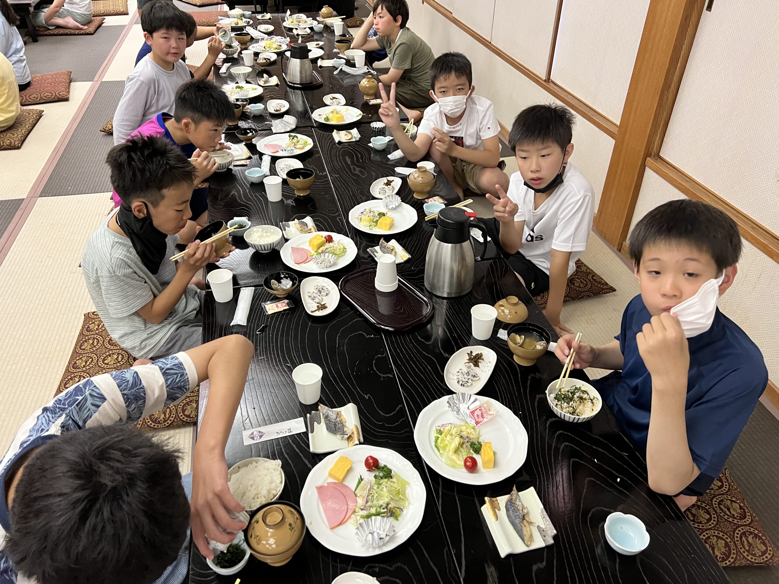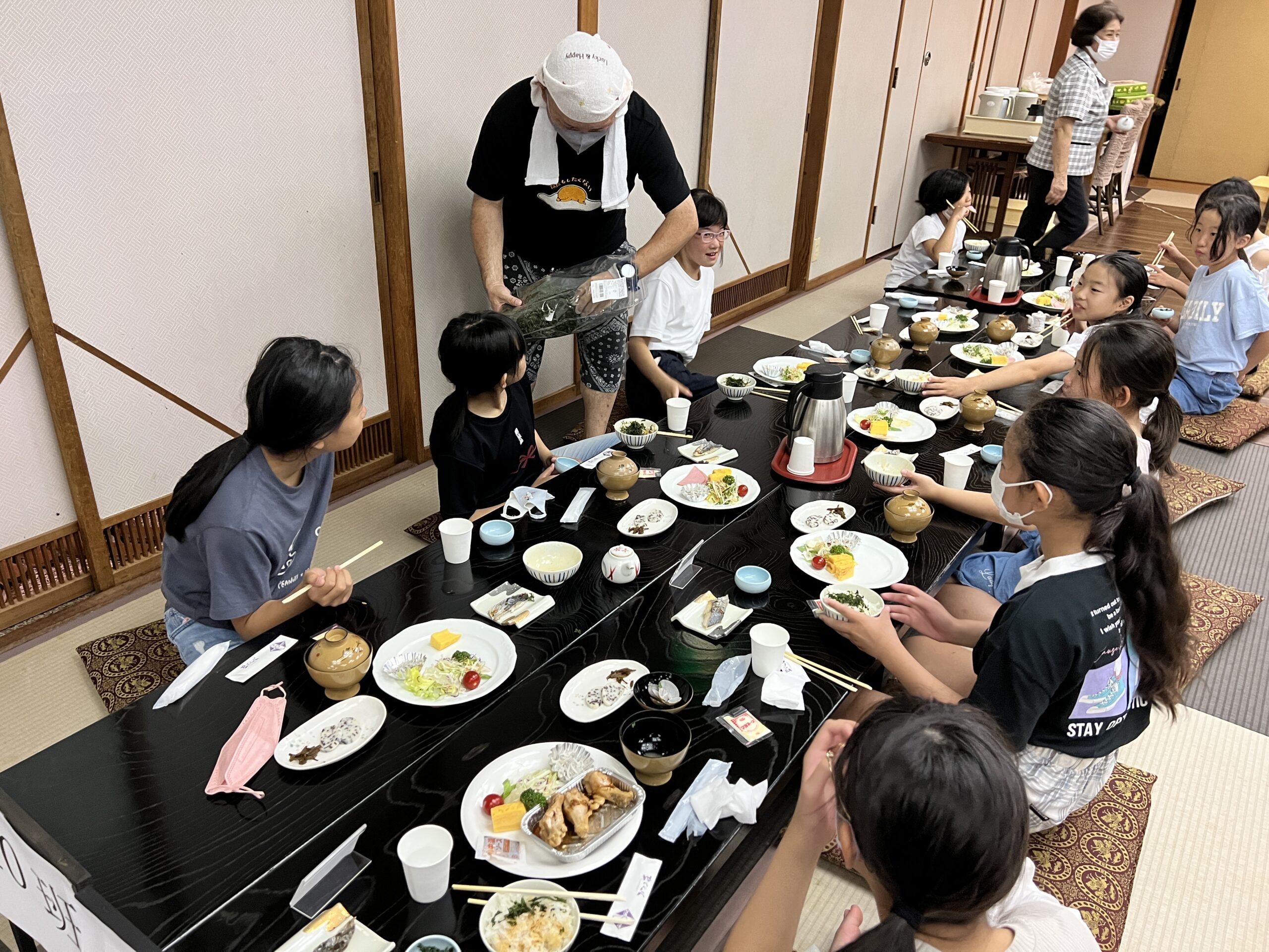 その中でも子どもたちに大人気だったのが「焙りのり」でした。ご飯にかけたりお味噌汁に入れたりと大活躍です。旅館の方のご厚意で、おかわりまでいただきました。