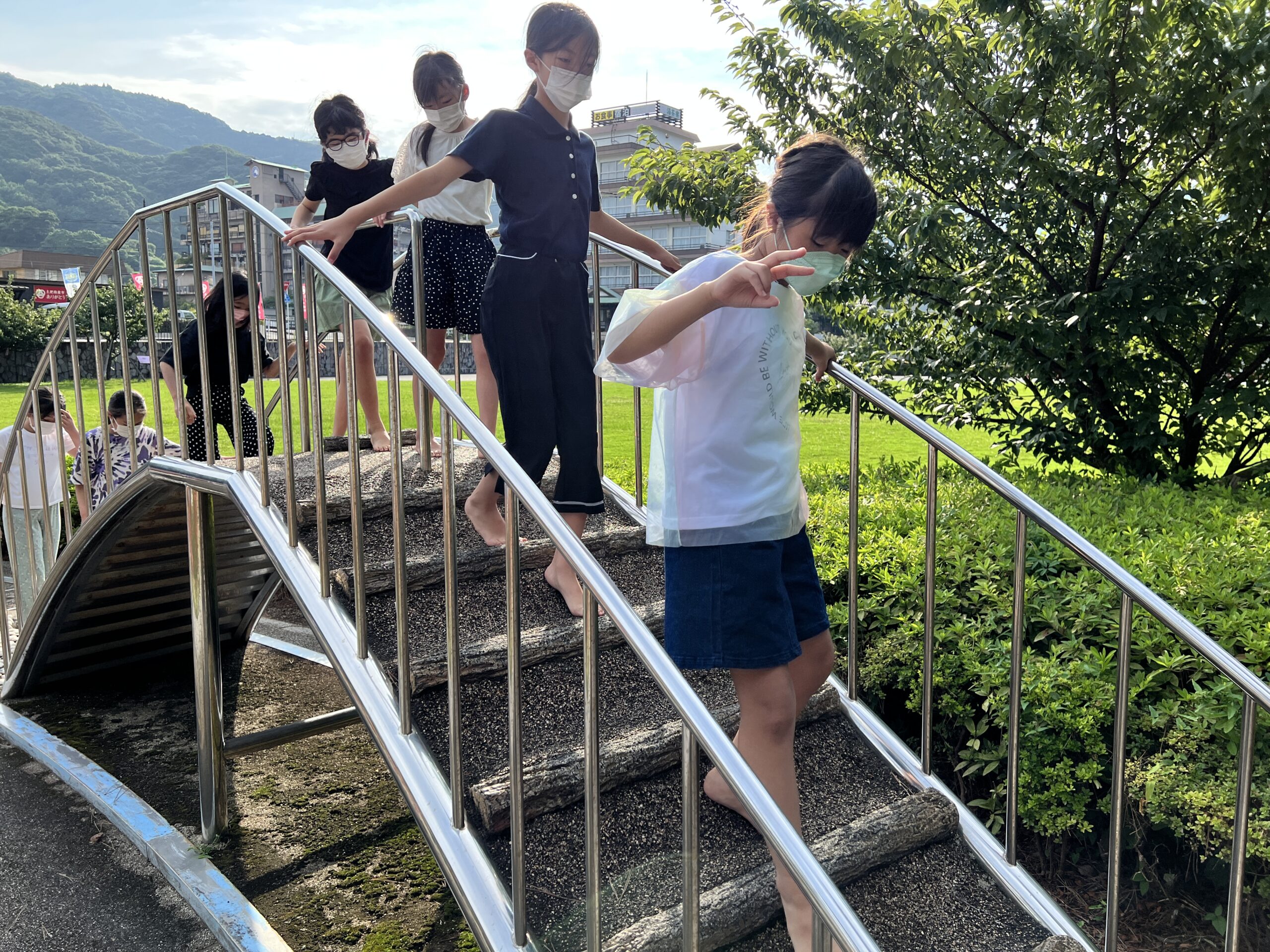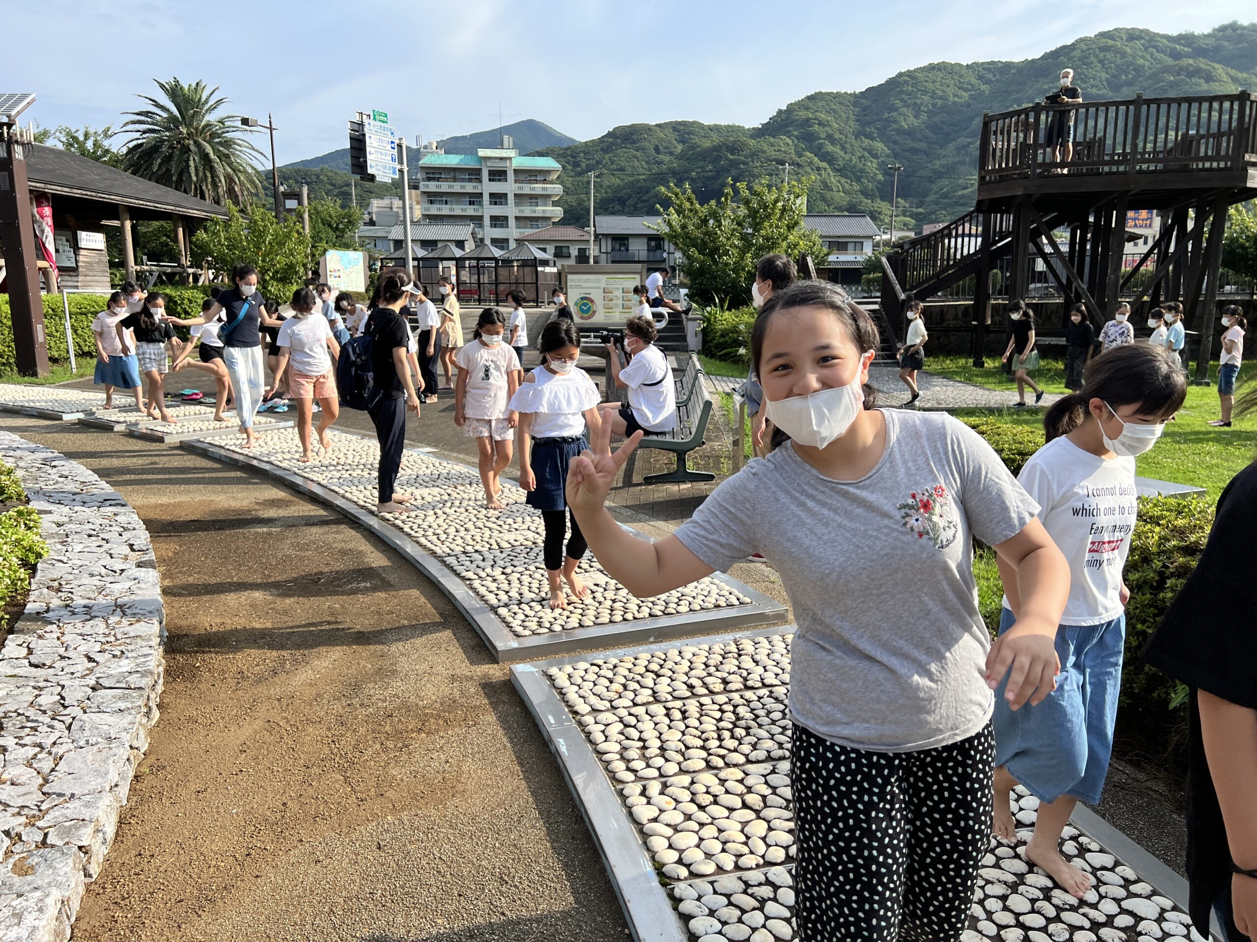 臨海学校3日目も花時計への散歩からスタートしました。