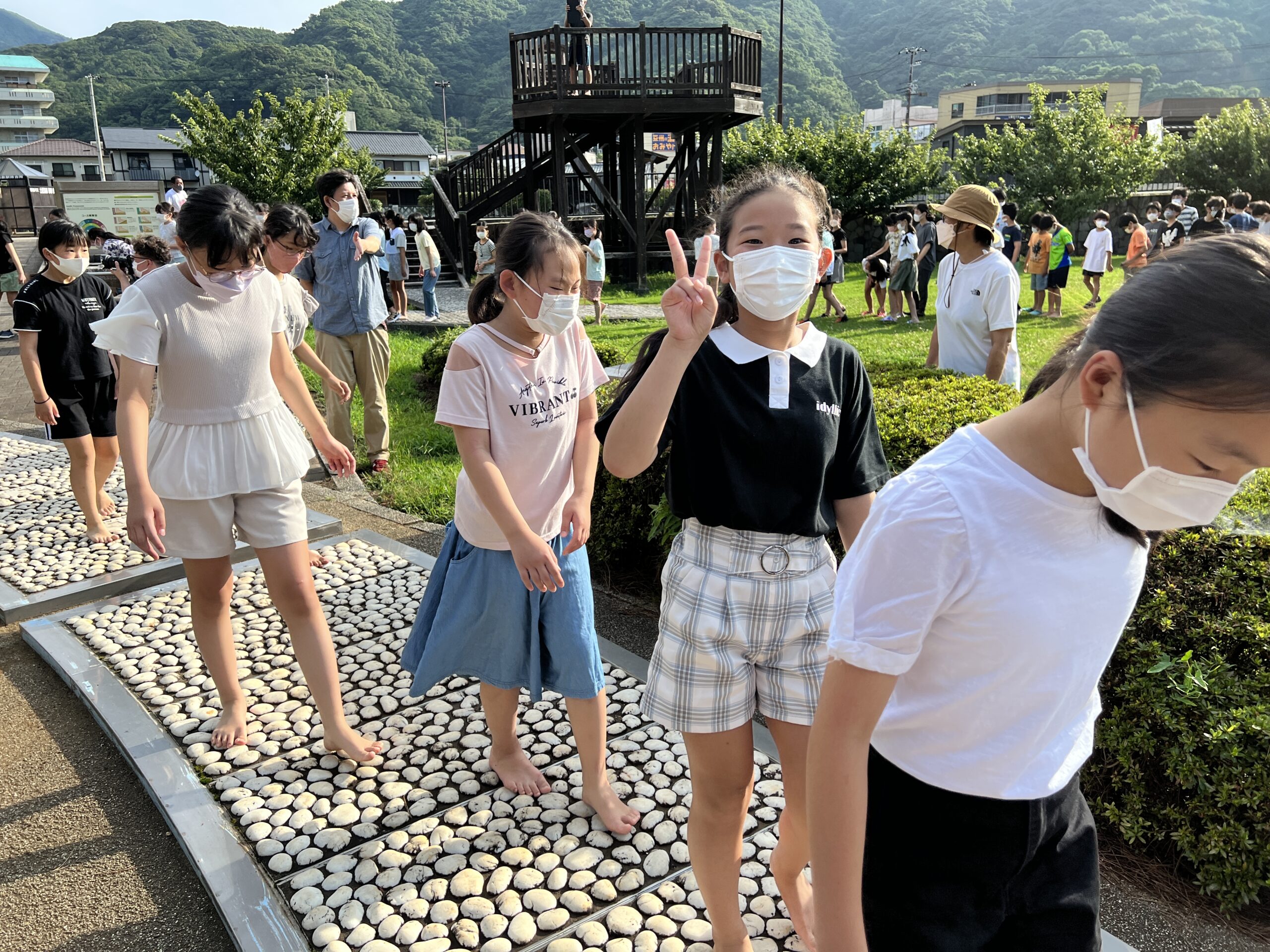 「痛すぎて歩けない!」「全然痛くないよ」と、反応はそれぞれでしたが、海で泳いで疲れた体をリフレッシュします。