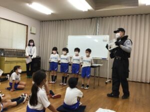 そこへ、ALSOKのかたが不審者に扮して子どもたちの所に、こっそり現れました。子どもたちはこの突然の出来事に全く対処が出来ず、自分たちの認識の甘さを感じたようです。