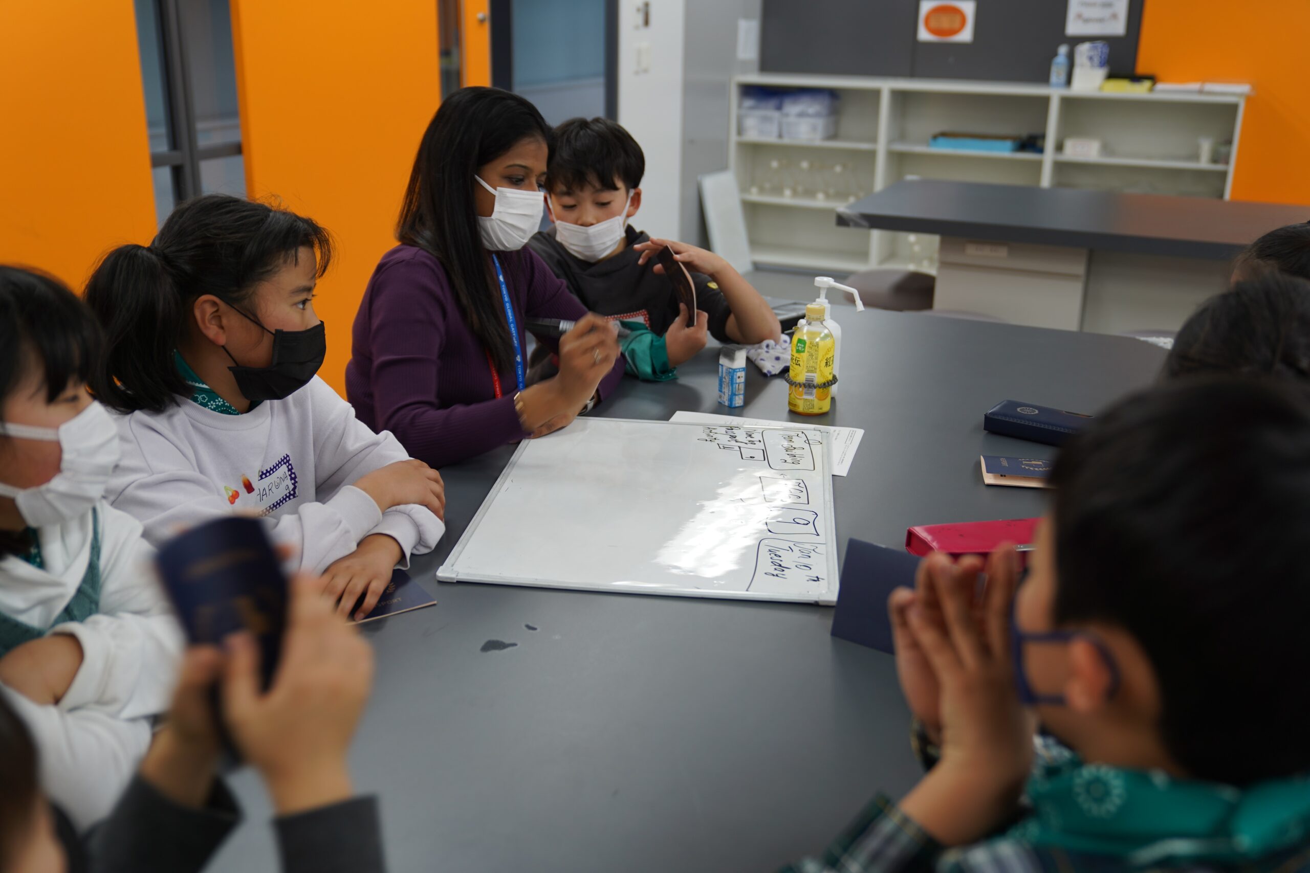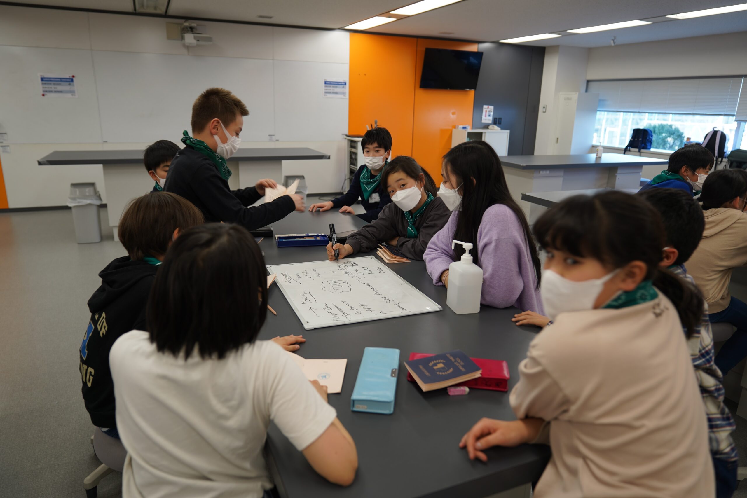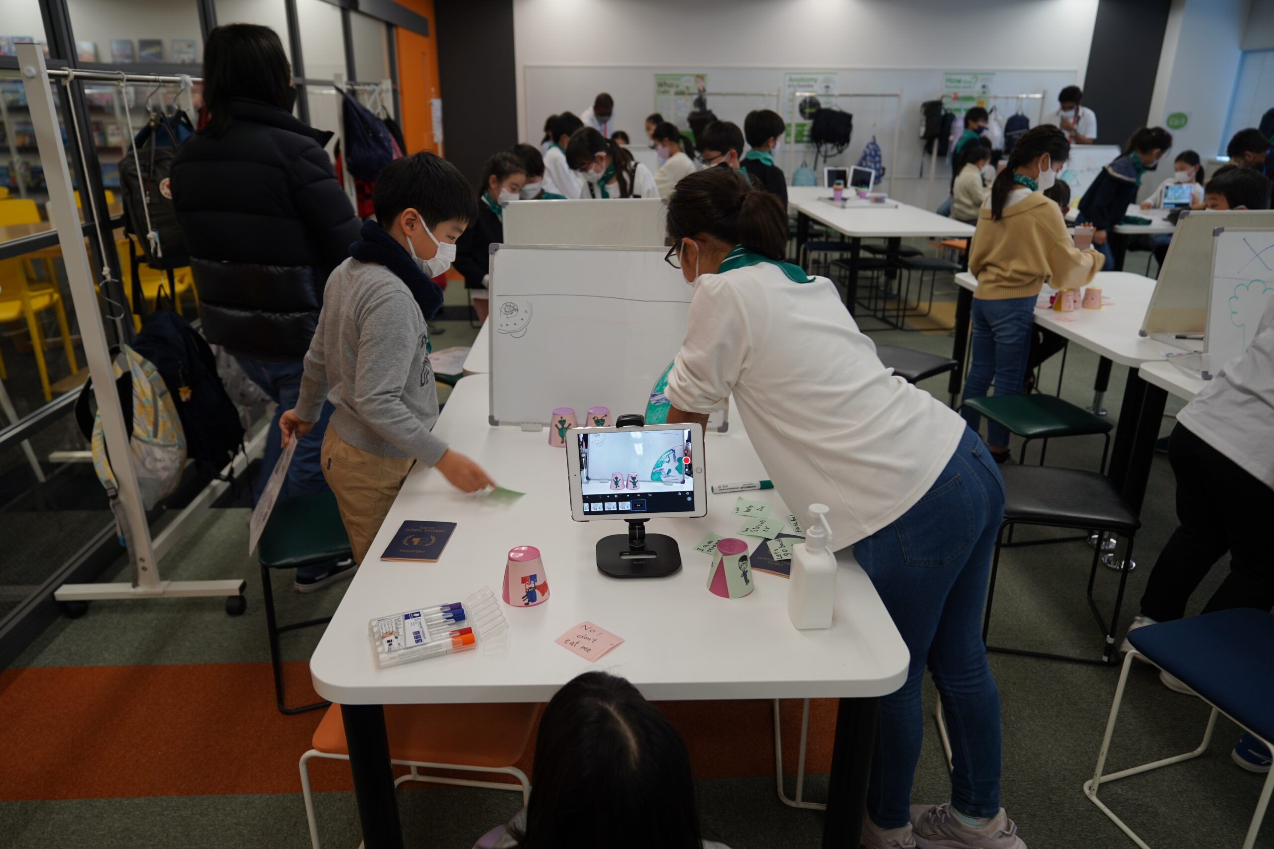 盛りだくさんのプログラムもあっという間に終わり、最後はチームごとに振り返りをしました。エージェントと子どもたちがホワイトボードを囲んで、今日やった活動の内容を振り返ったり、感想を言い合ったりしました。初めは恥ずかしがって消極的だった子どもたちも、すっかりエージェントと打ち解け、最後の時間を楽しんでいました。