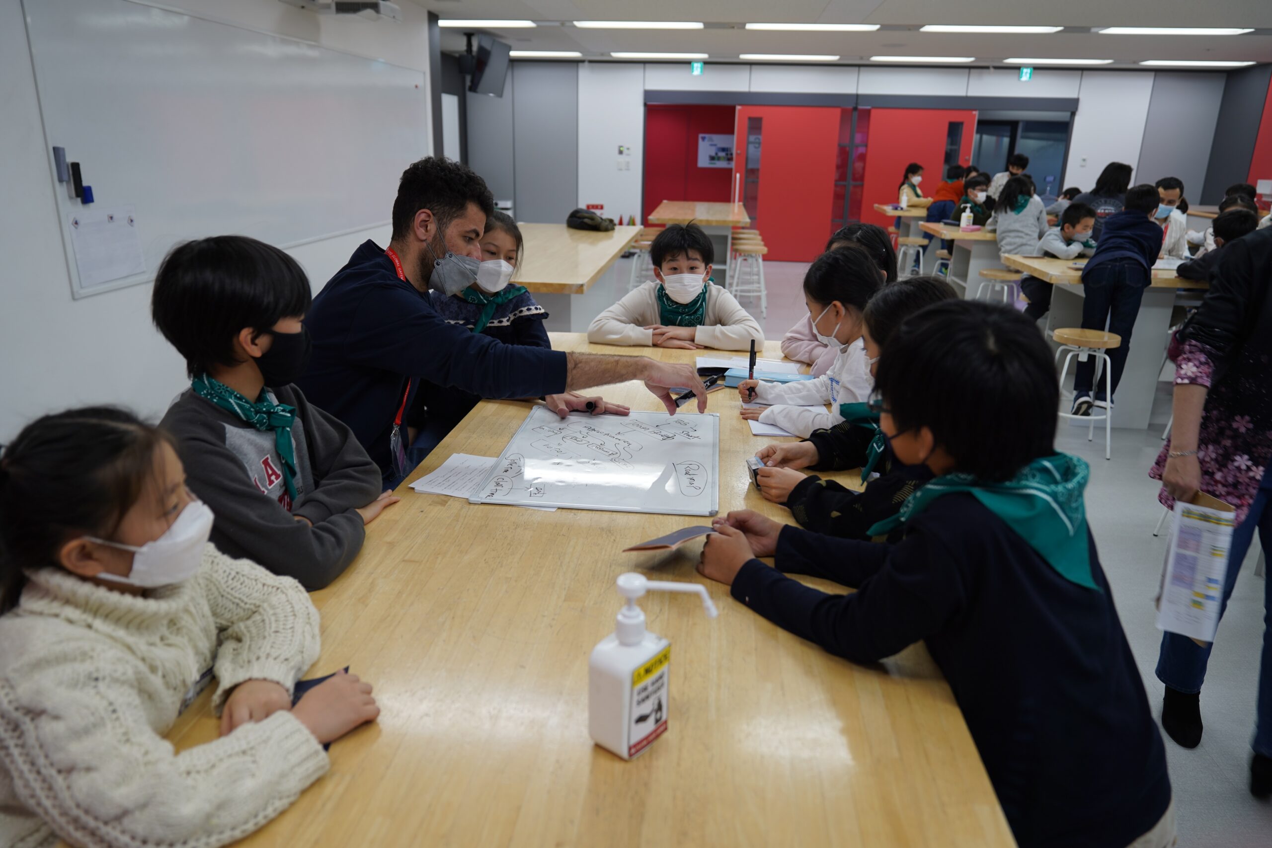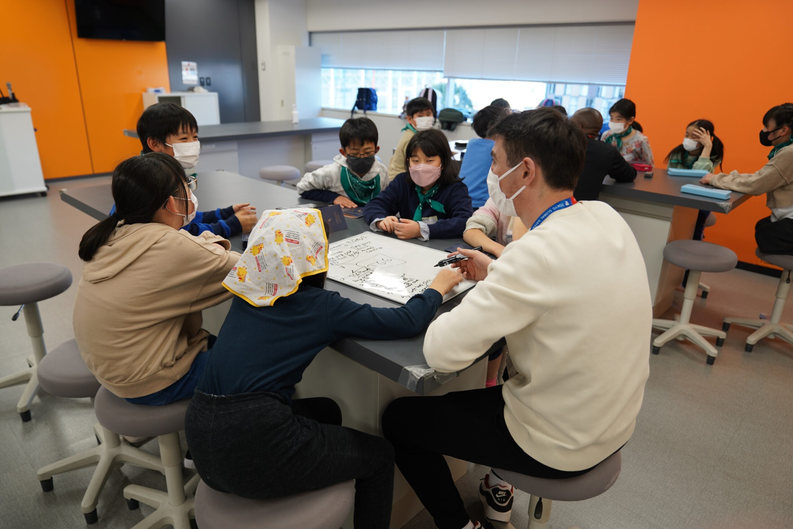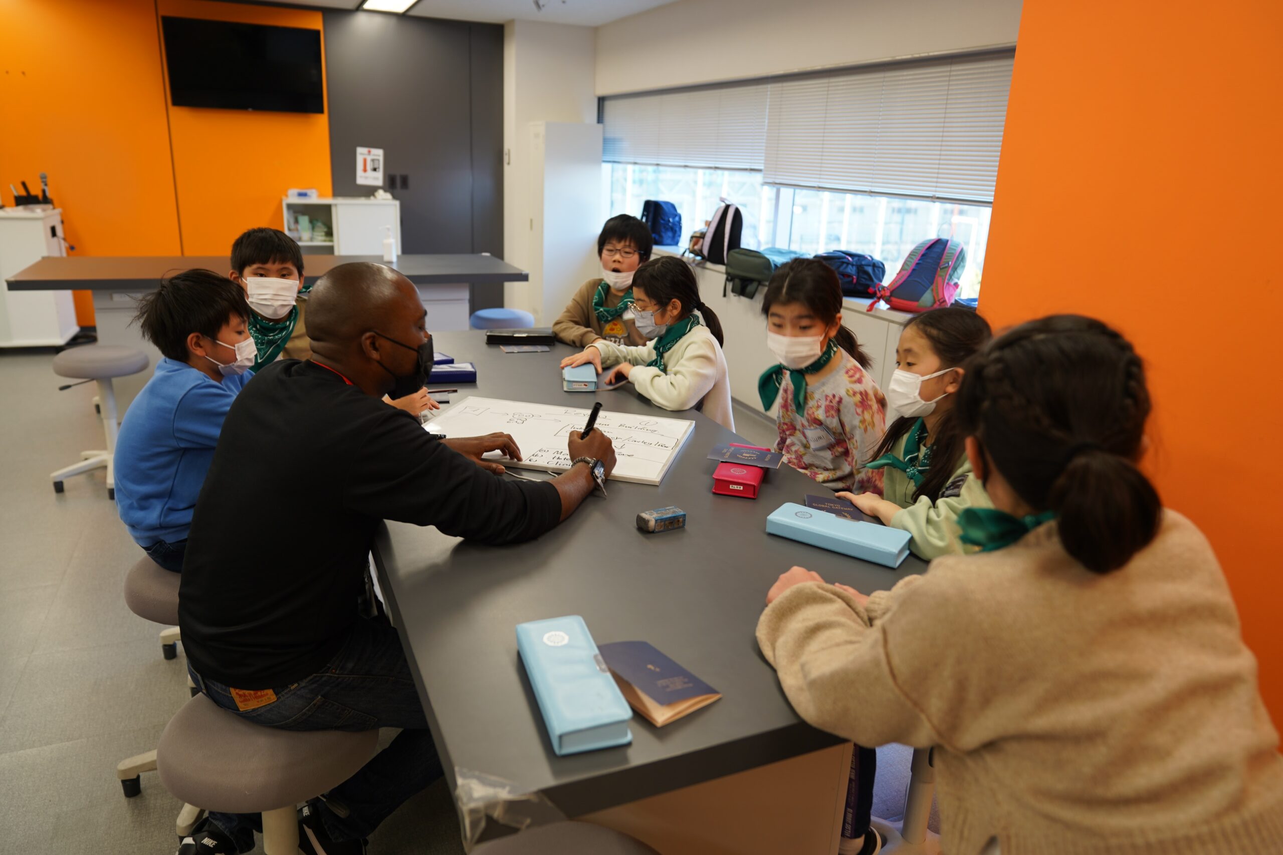 盛りだくさんのプログラムもあっという間に終わり、最後はチームごとに振り返りをしました。エージェントと子どもたちがホワイトボードを囲んで、今日やった活動の内容を振り返ったり、感想を言い合ったりしました。初めは恥ずかしがって消極的だった子どもたちも、すっかりエージェントと打ち解け、最後の時間を楽しんでいました。