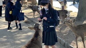 大仏殿を見学した後は、鹿とのふれあいタイムでした。