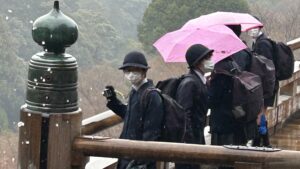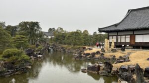 しかし、今日の天気はあいにくの雨。冷たい雨の中、400年の歴史を感じながら二条城の二の丸御殿を見学しました。