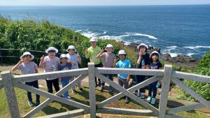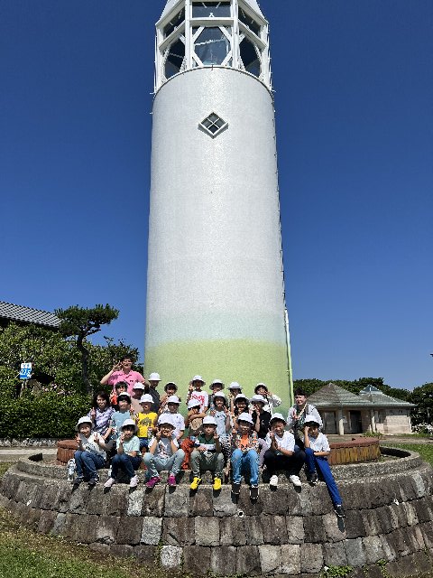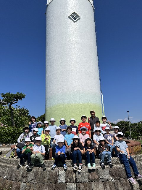灯台をバックに、クラスごとに記念写真を撮りました。
