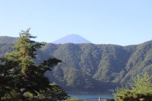 今日は最高のお天気。朝、西湖の湖畔からは、美しい富士山をみることができました。