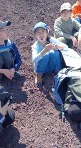 御中道はそのコースの途中に森林がなく、土砂崩れなどで、溶岩の粒、スコリアだけとなっている部分があります。スコリアに磁石を近づけて、溶岩釣りのようにして楽しむこともしました。
