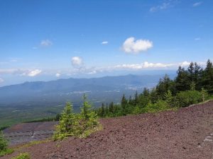 五合目も最高のお天気でした。山頂までがくっきりと見え、これから歩く森林限界点の森がしっかりとわかりました。