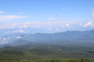 今日の御中道からは、青木ヶ原樹海と富士五湖がくっきりと見える最高のお天気です。富士の測火山なども観察することができました。