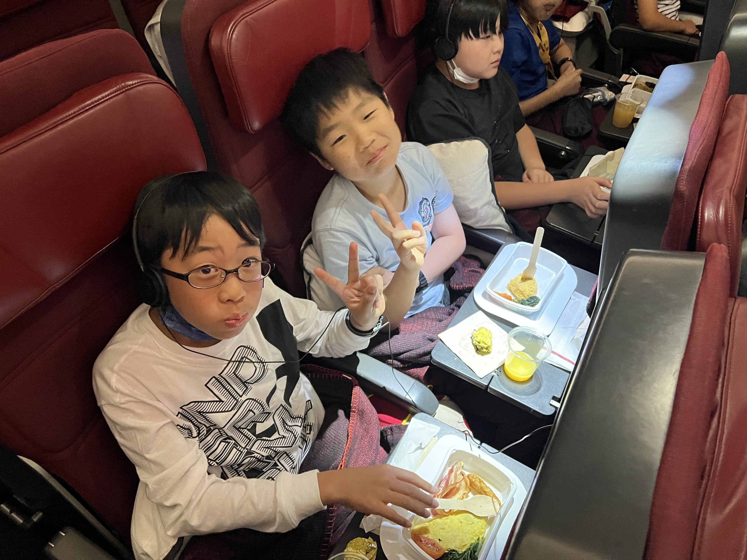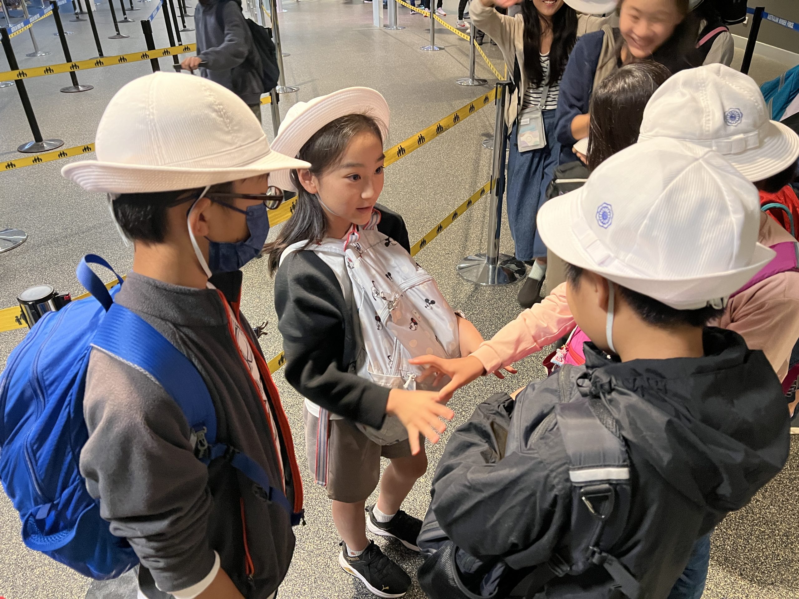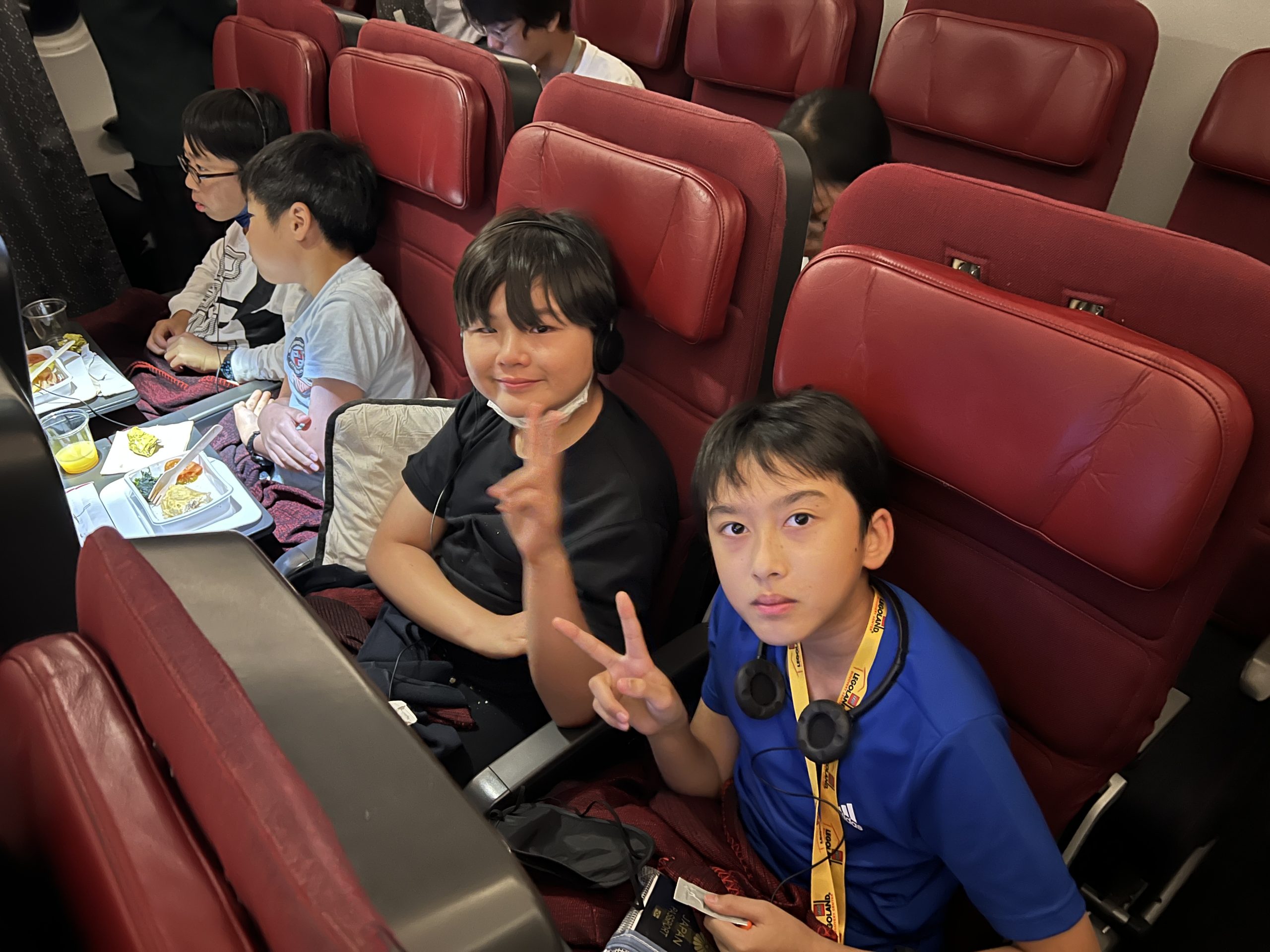 羽田空港に集合し、荷物を預け、お見送りに来てくださっていた保護者の皆様へ別れを告げて、いざ飛行機へ。初めて海外に行く子、初めて飛行機に乗る子もいて、ワクワクとドキドキが隠せない様子でした。