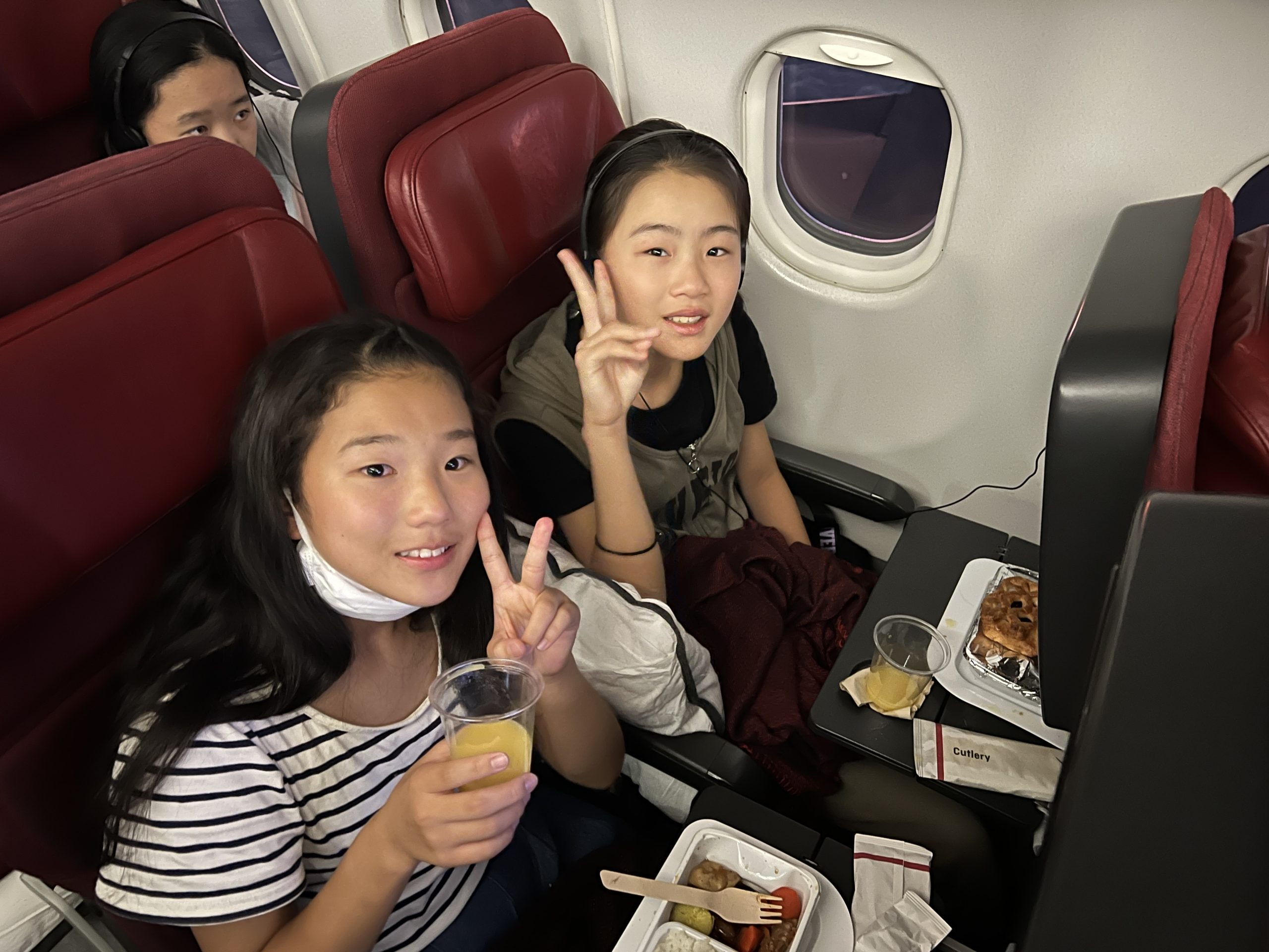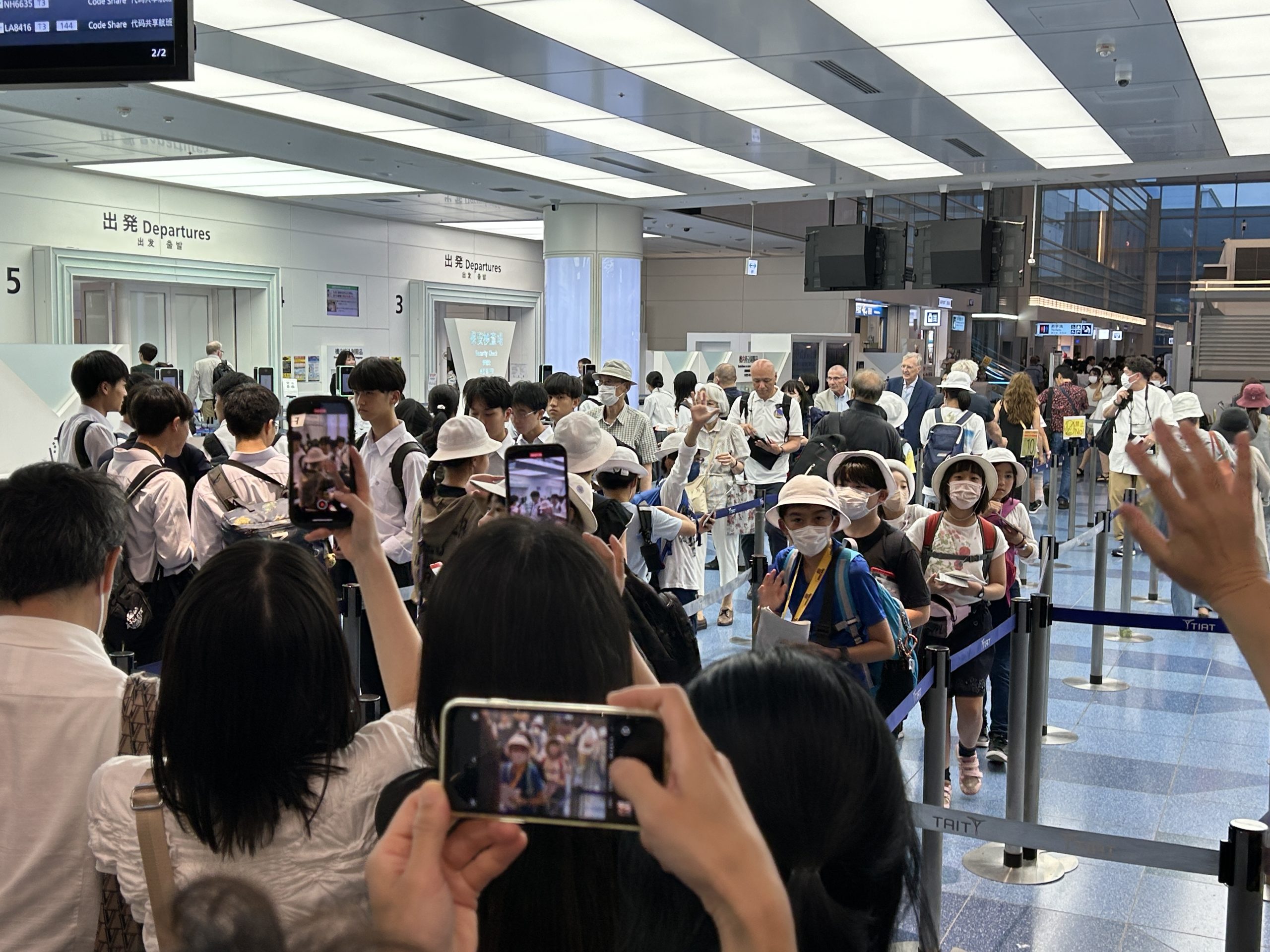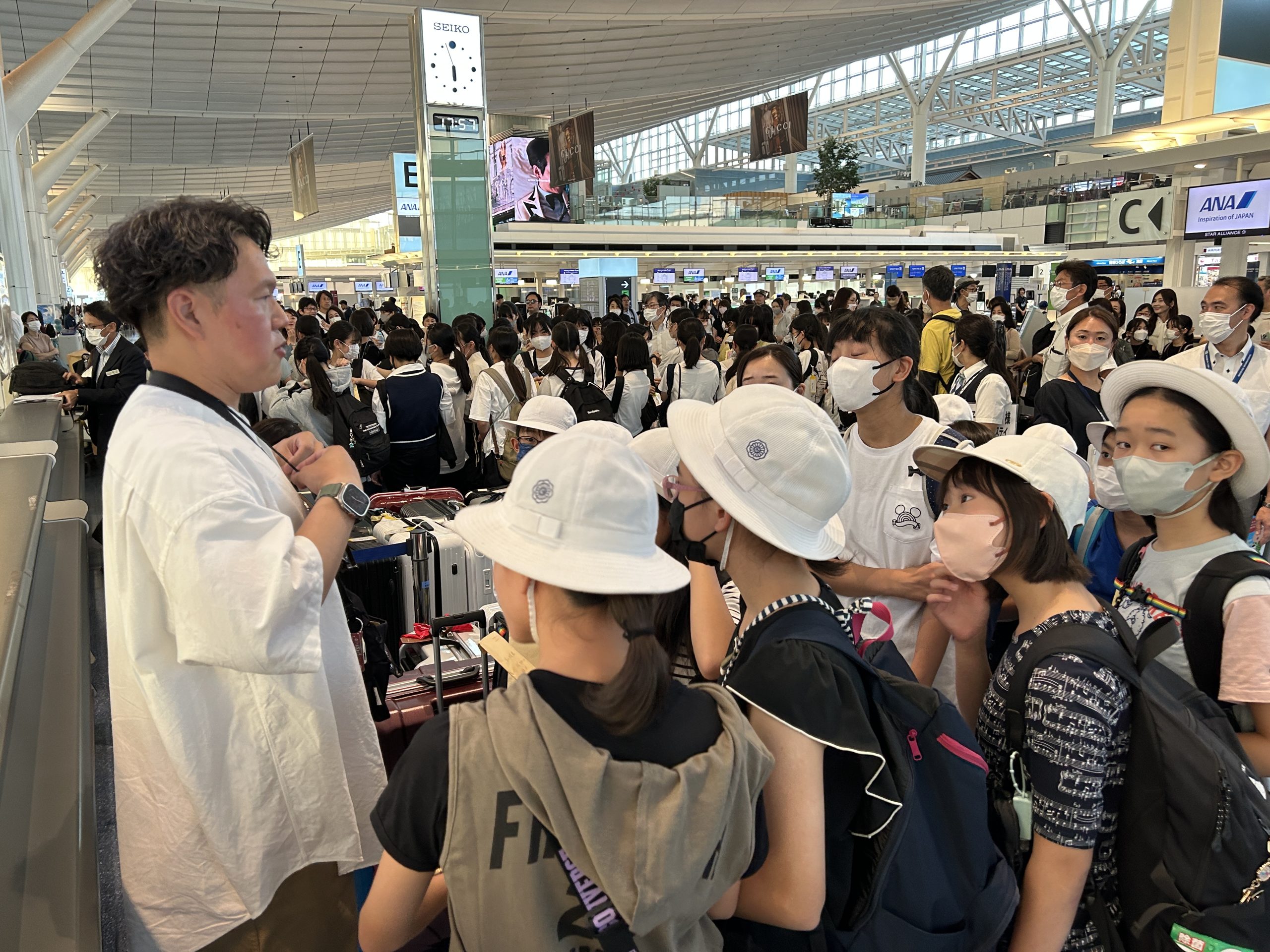 羽田空港に集合し、荷物を預け、お見送りに来てくださっていた保護者の皆様へ別れを告げて、いざ飛行機へ。初めて海外に行く子、初めて飛行機に乗る子もいて、ワクワクとドキドキが隠せない様子でした。