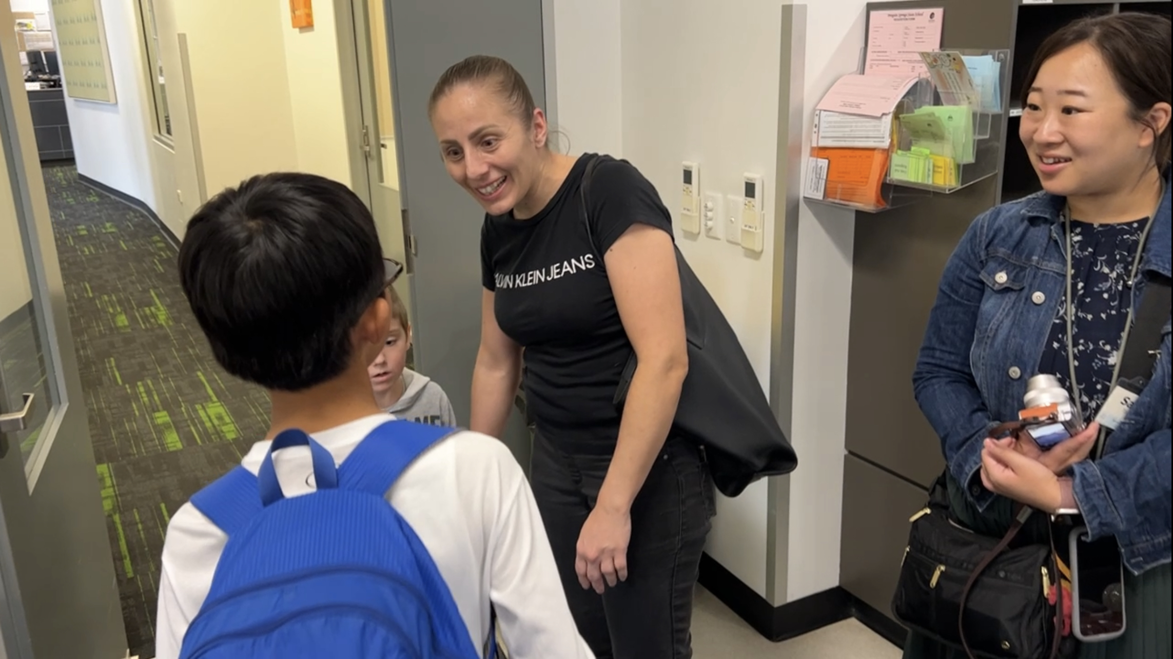 ホストファミリーと初めてのご対面です。事前にお互いの顔写真やメールのやり取りをしていたため、受け渡しはスムーズに行うことができました。放課後よりも早くホストファミリーが来たため、バディの子どもたちを待っての帰宅となりました。この日お休みだったバディもいましたが、代理店のスタッフがしっかりとホストファミリーの元へと送り届け、ホームステイ開始となりました。