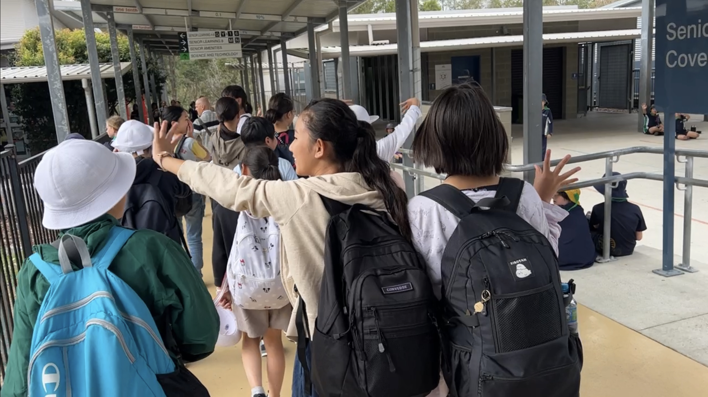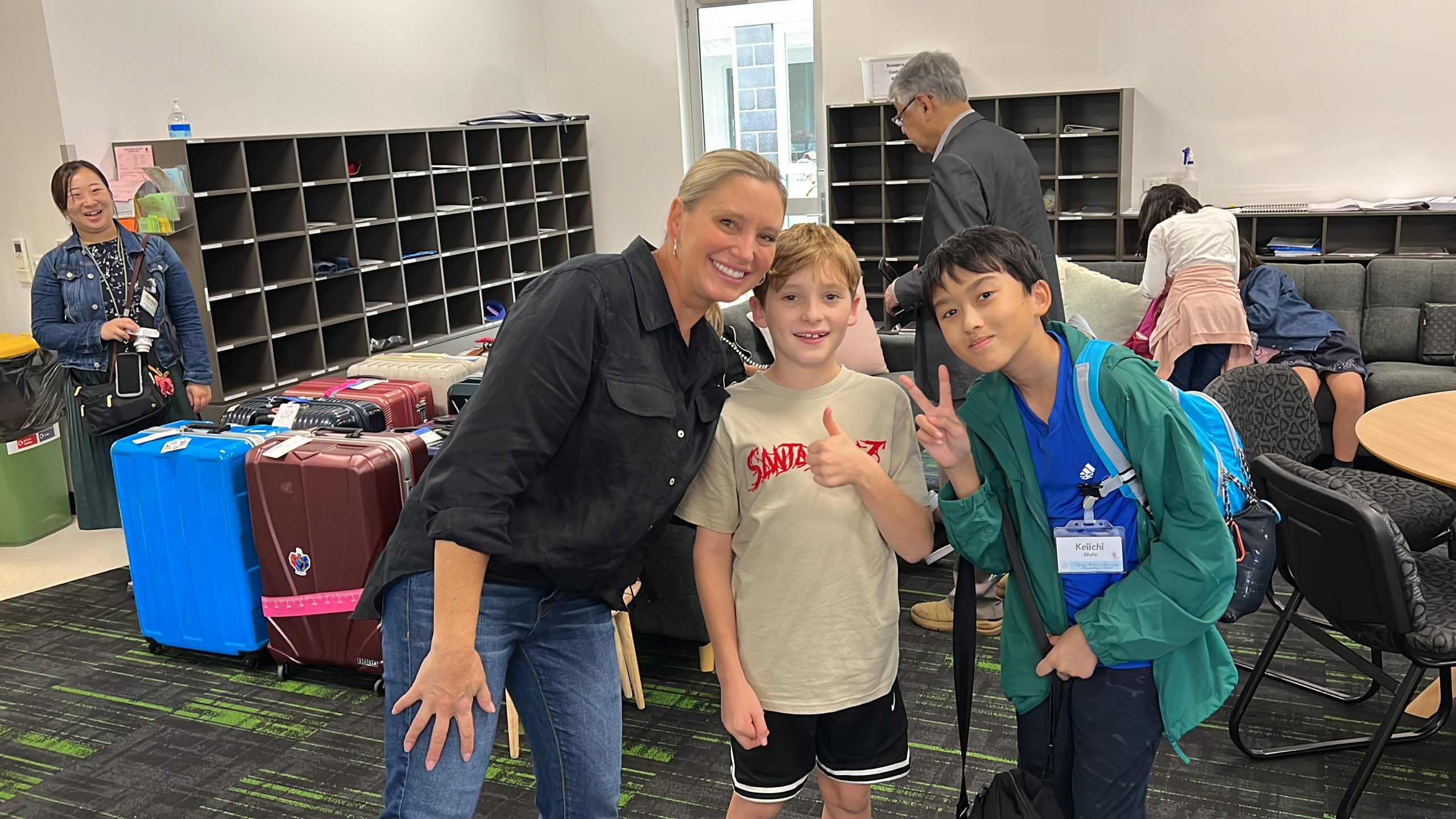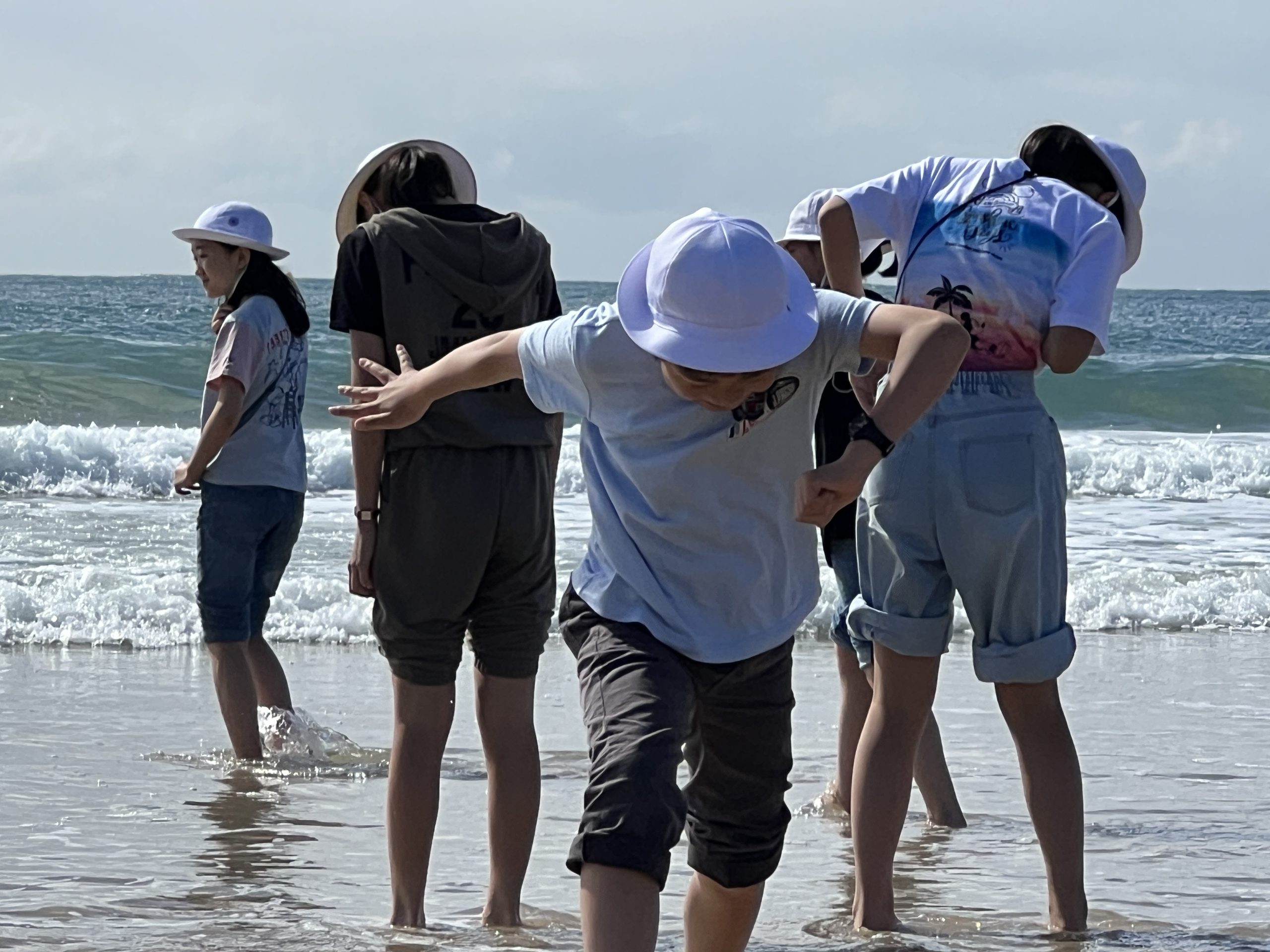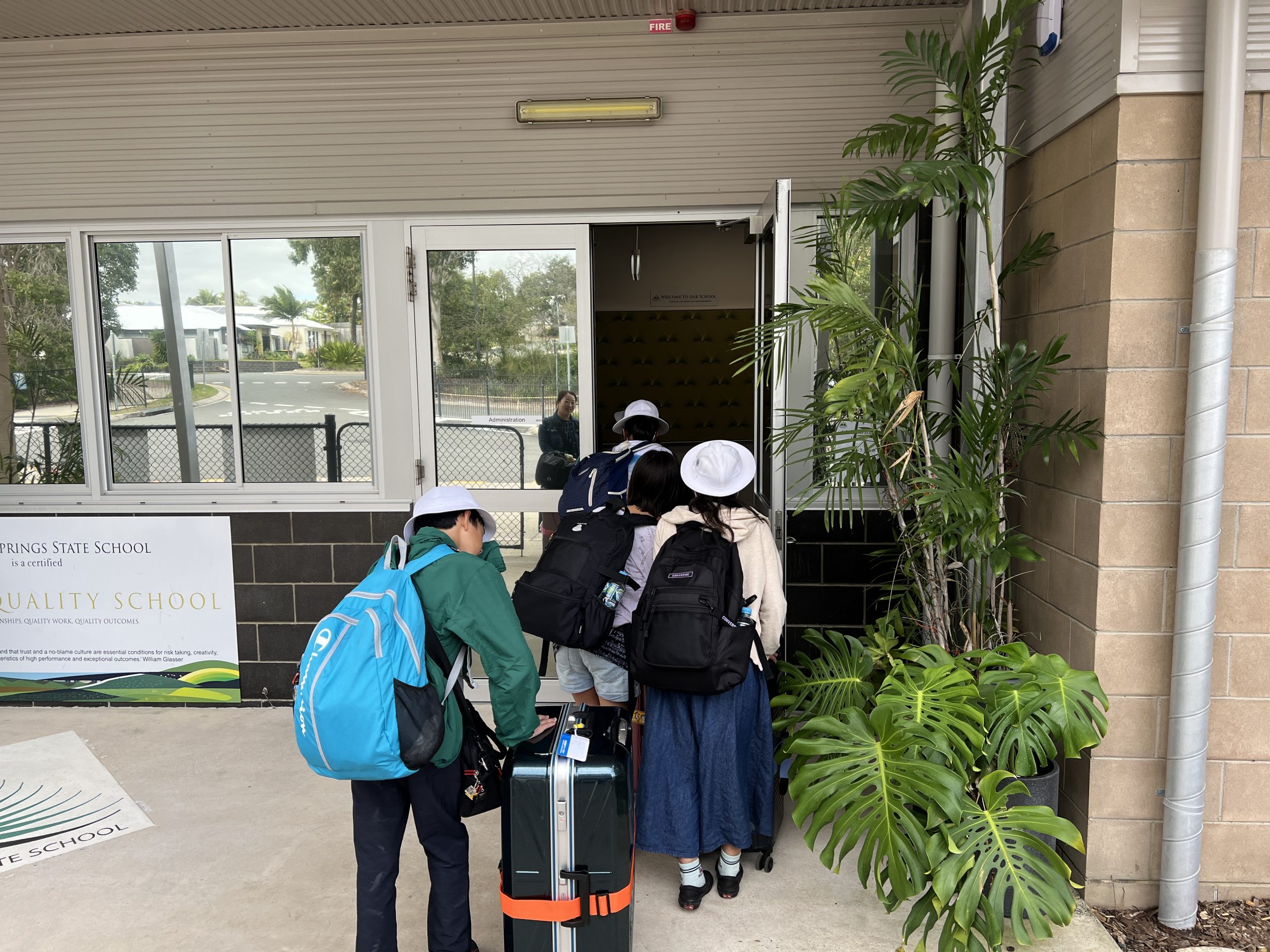 初めての機内泊ということもあって、なかなか寝付けない子もいましたが、全員元気にブリスベン国際空港に到着しました。預けた荷物の中には、お祖父様が作ってくださった竹とんぼや、日本食に挑戦したいから持ってきて欲しいと頼まれたお味噌が入っており、税関検査で英語で説明をしました。知っている単語を駆使して、無事税関を通過することができた子どもたちは、バスに乗ってサンシャインコーストを目指しました。
