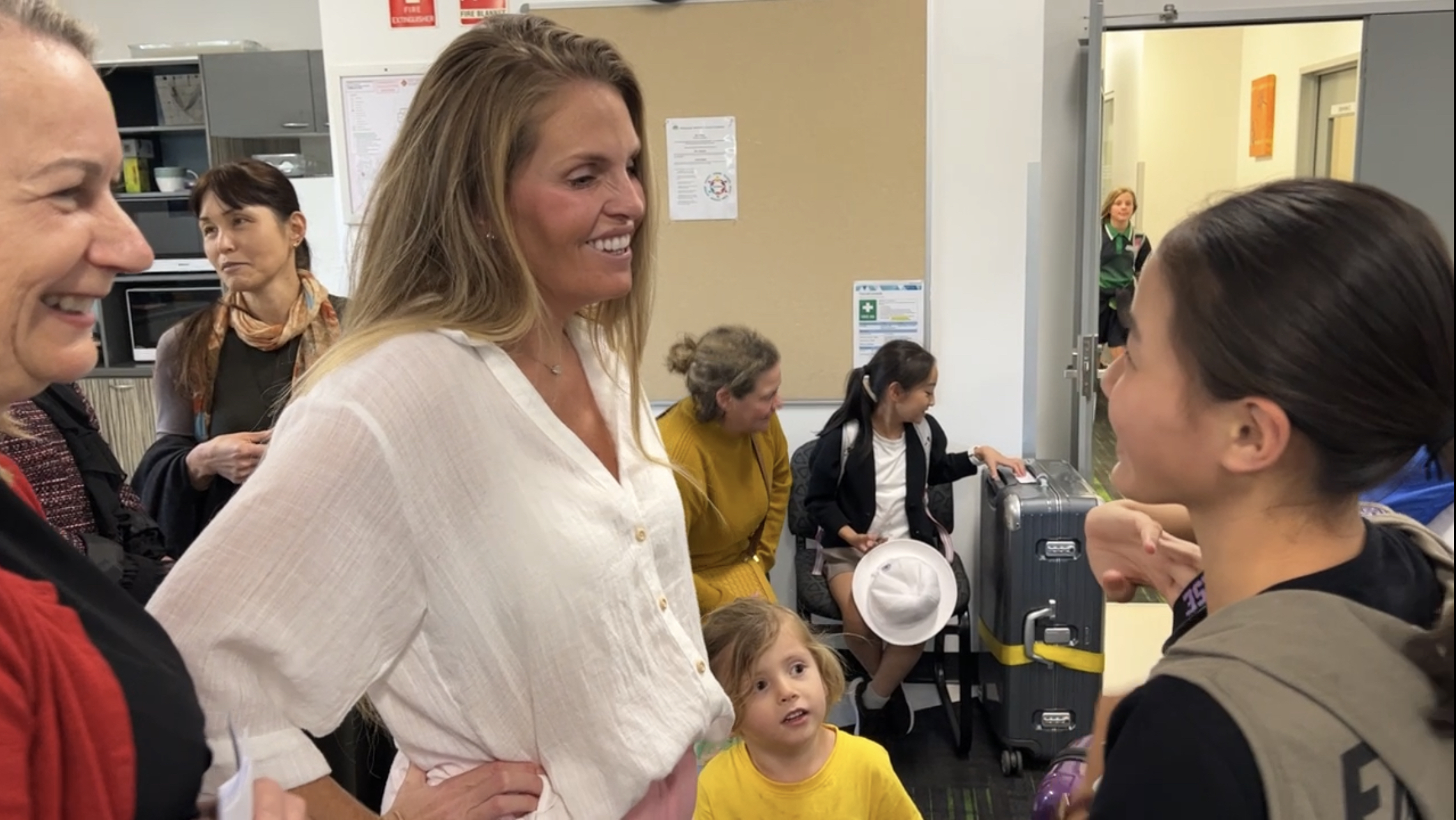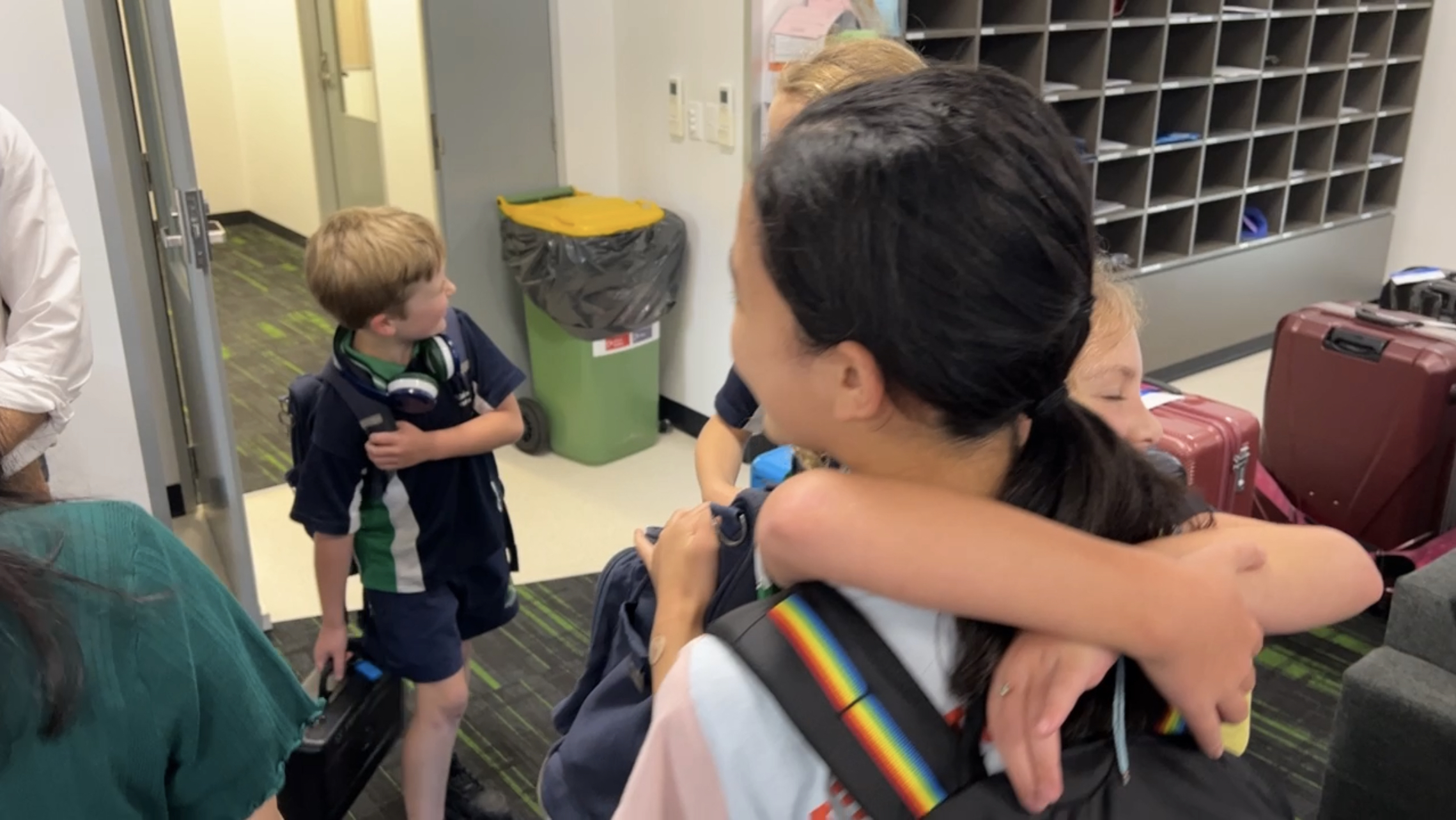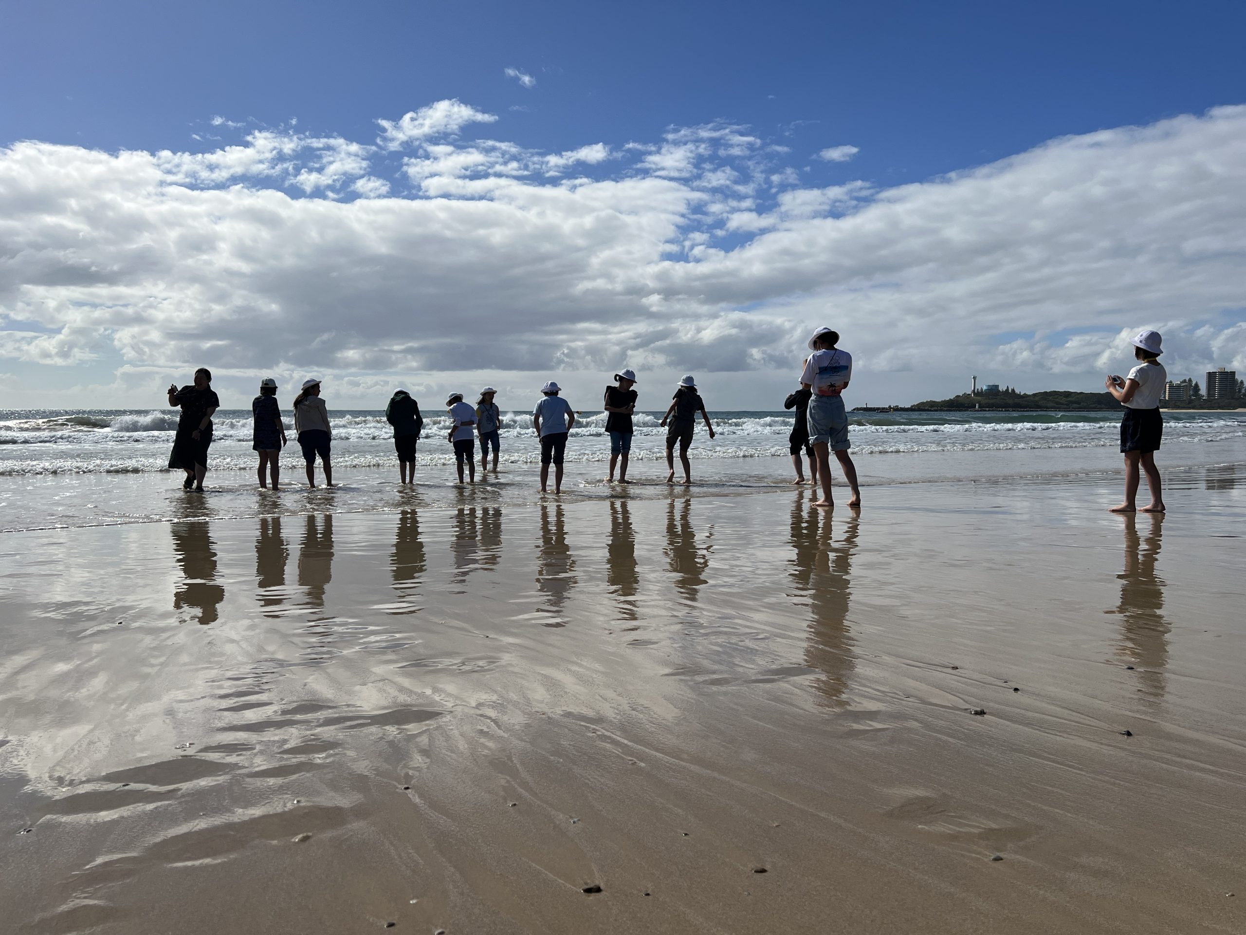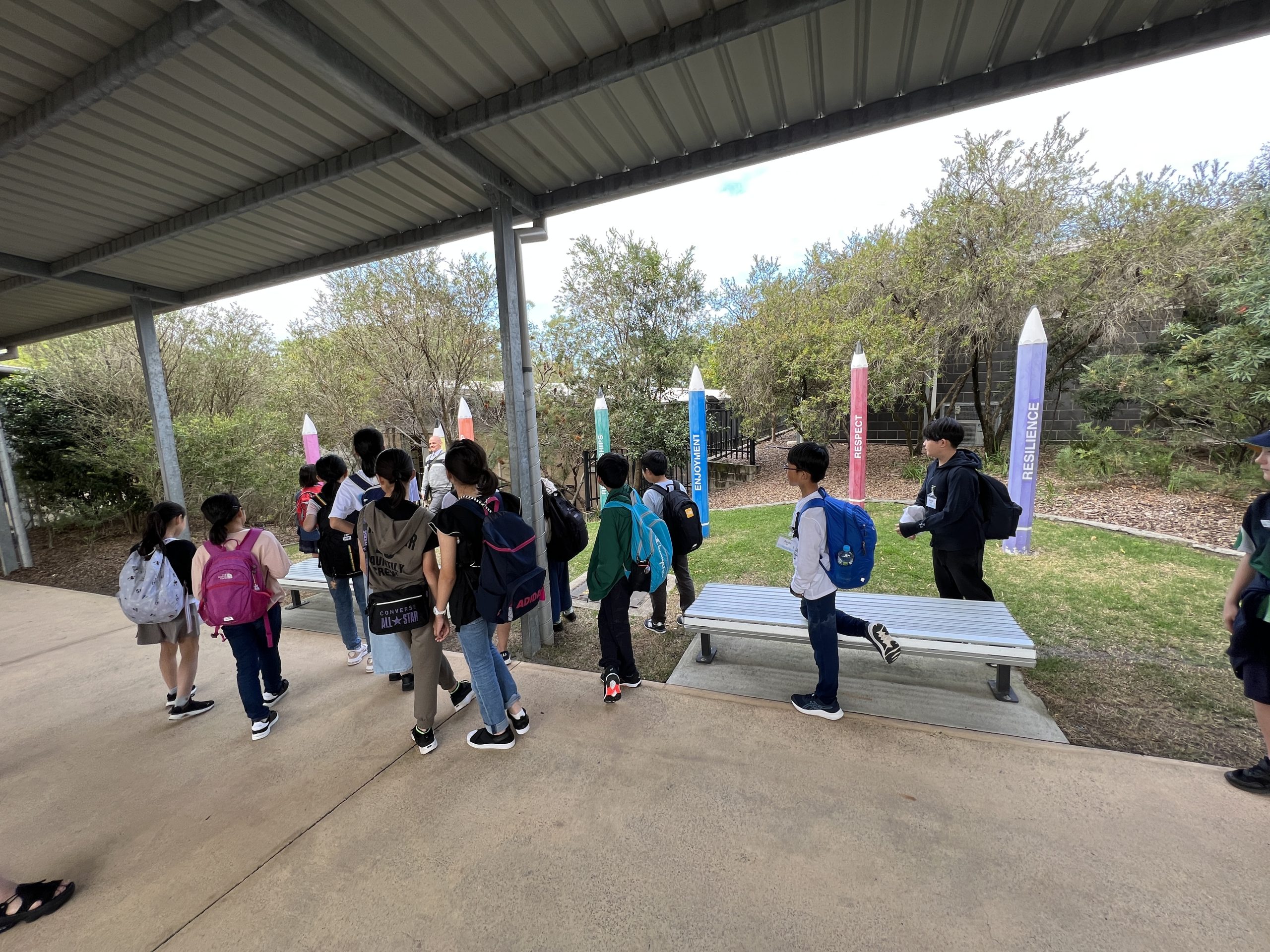 初めての機内泊ということもあって、なかなか寝付けない子もいましたが、全員元気にブリスベン国際空港に到着しました。預けた荷物の中には、お祖父様が作ってくださった竹とんぼや、日本食に挑戦したいから持ってきて欲しいと頼まれたお味噌が入っており、税関検査で英語で説明をしました。知っている単語を駆使して、無事税関を通過することができた子どもたちは、バスに乗ってサンシャインコーストを目指しました。