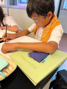 新聞作りの学習は、私立成田小学校の校舎を利用して行われ、子どもたちはとても集中して新聞作りに取り組んでいました。