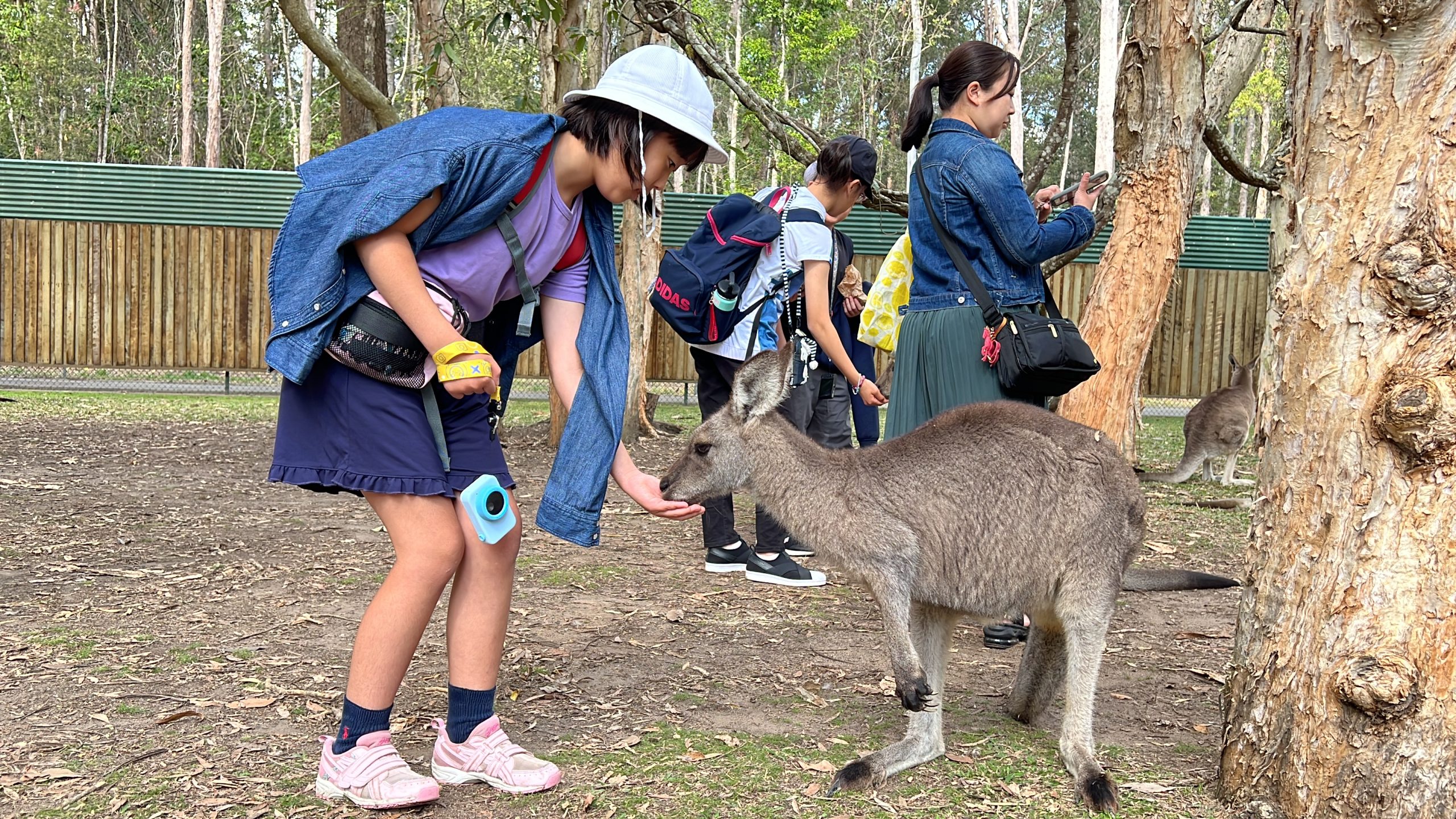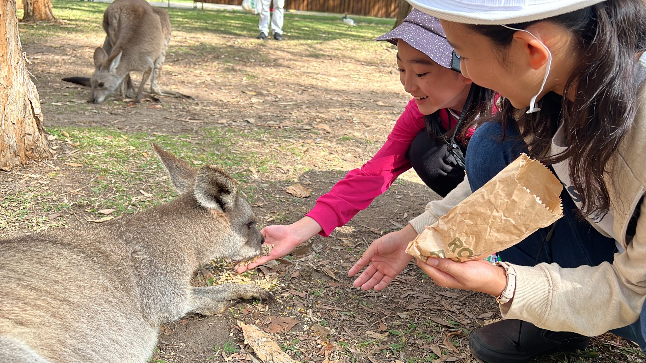 カンガルーのいるエリアに入り、餌やりや触れ合い体験をしました。相模の子どもたちは、ヤギのバニラに餌をやり慣れているので、上手に餌をあげることができました。