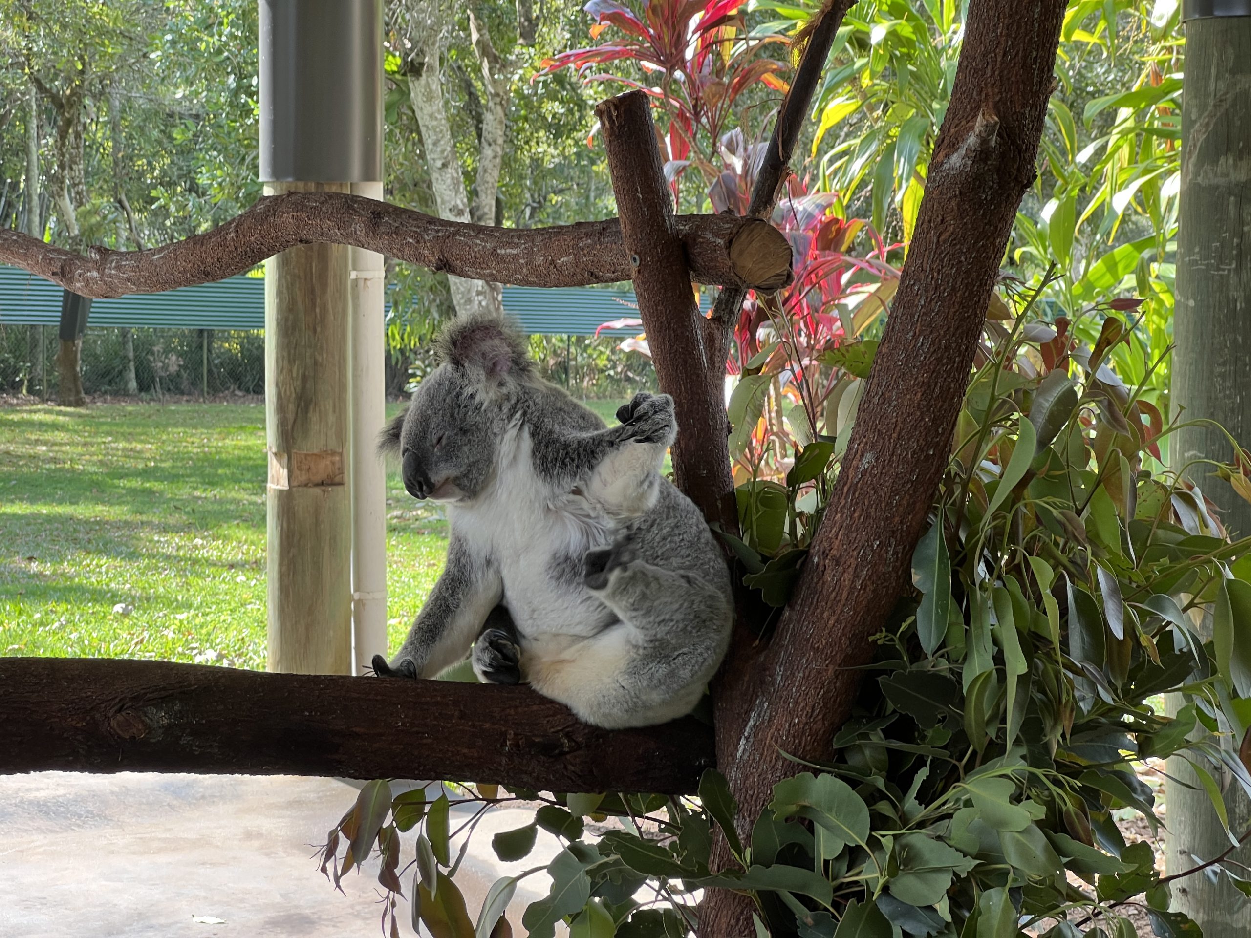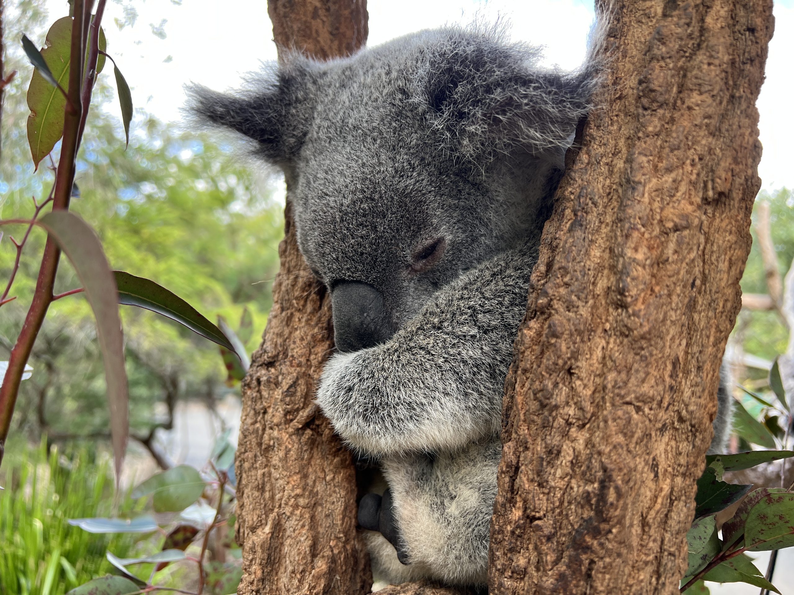 園内には、所々にコアラの展示があります。日本では遠くからしか見られないコアラも、実際に触れることができる距離で見ることができました。