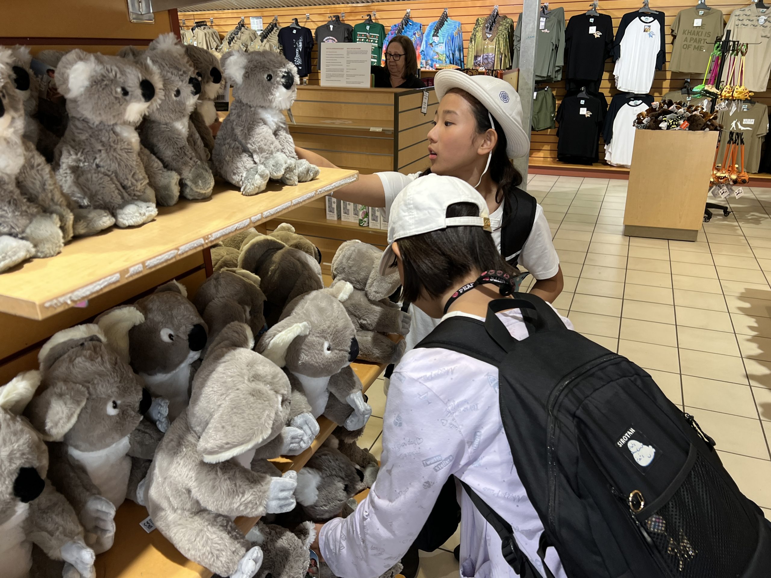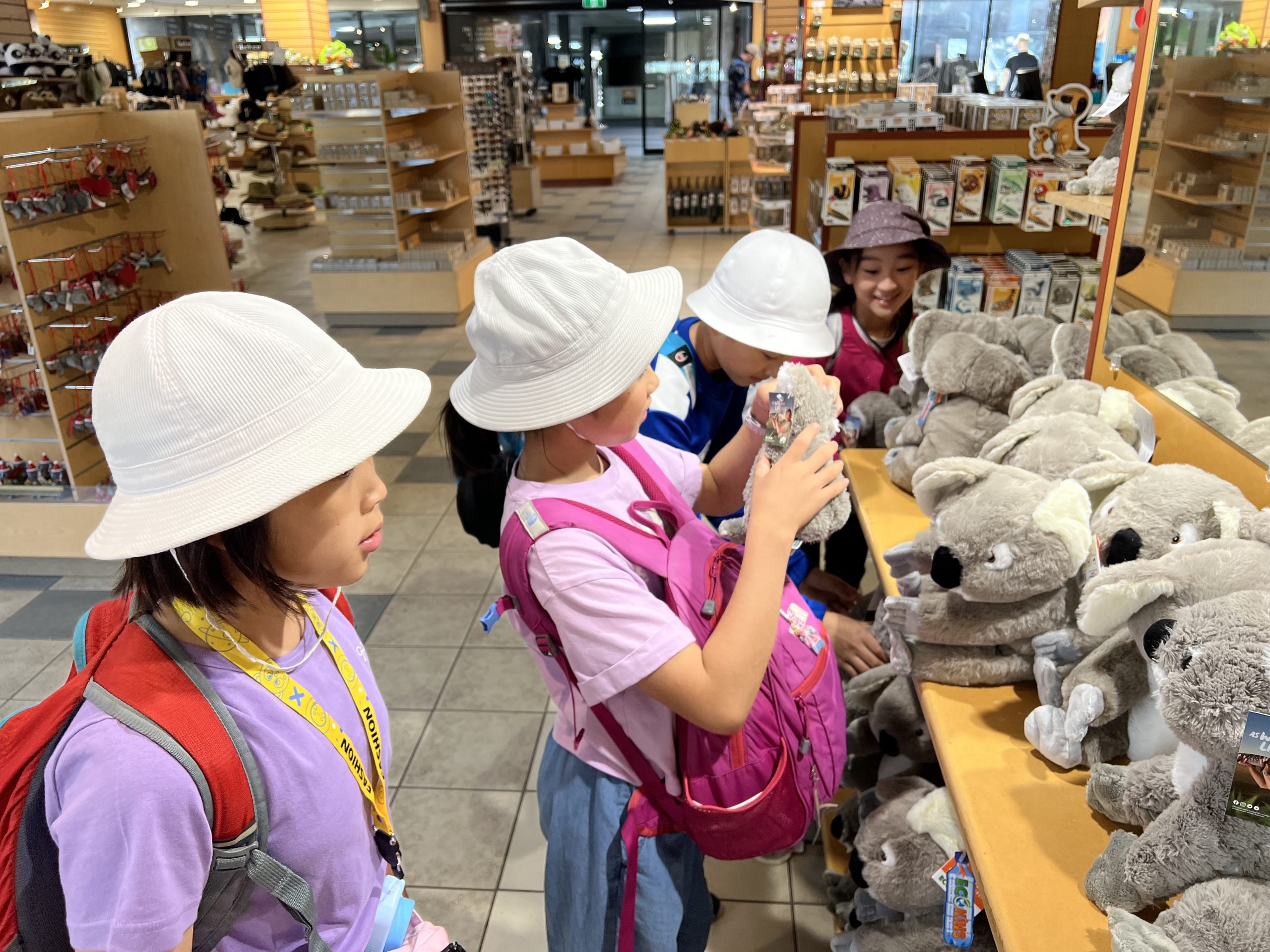 お腹が満たされたところで、お土産を買いに行きました。一番人気はやはりコアラやカンガルーのぬいぐるみ。「あっちの大きいのが欲しいけど、90ドルもしたから諦めました。」と、自分のお小遣いの中で上手にやりくりする姿も見られました。