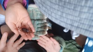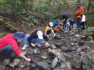 沢では、サワガニを見付けました。寒さから、なかなかサワガニを見付けにくい状況でしたが、それでも、懸命に石をひっくり返し、見事にサワガニを見つけて大喜びしている子どもたちでした。