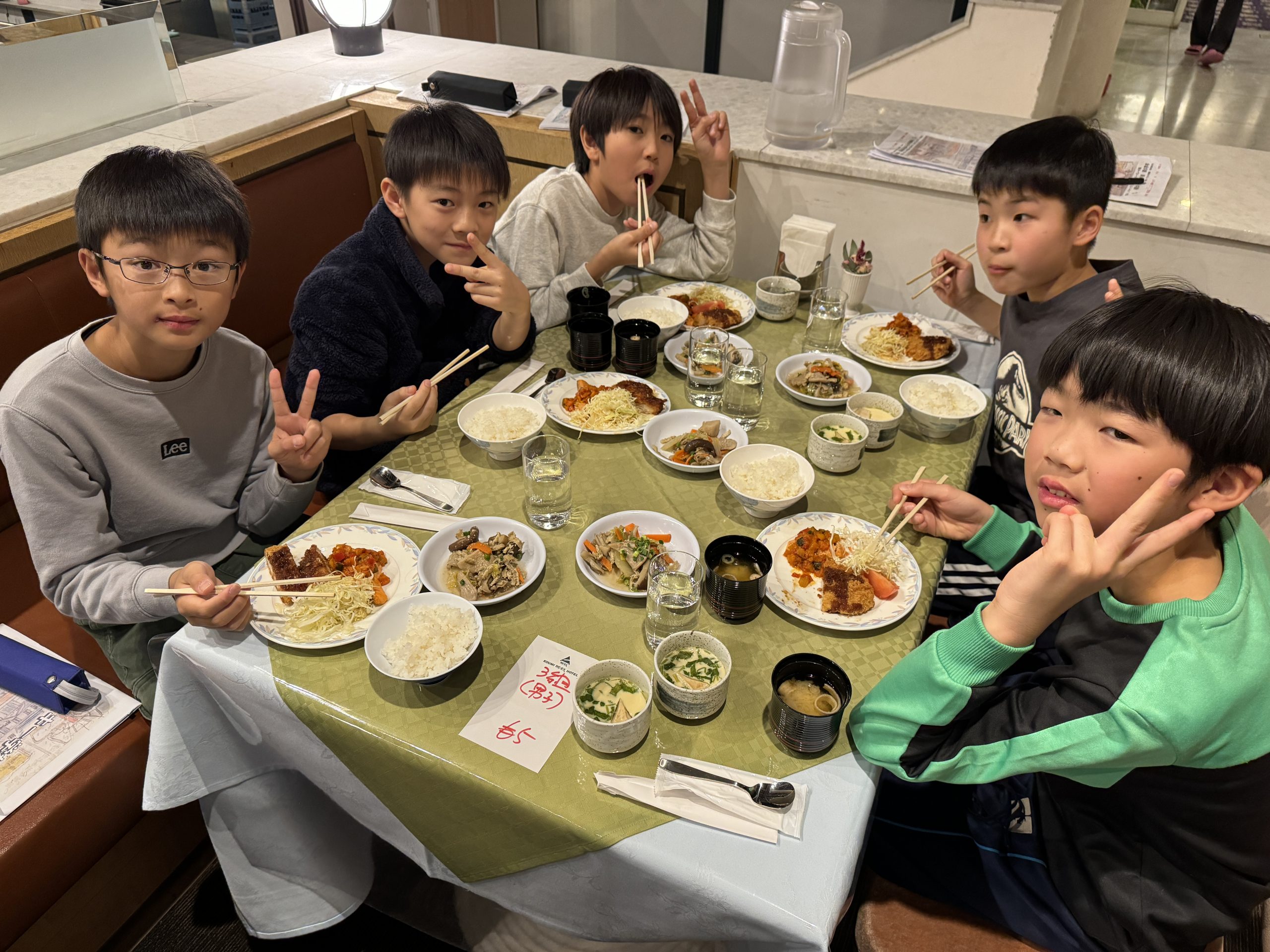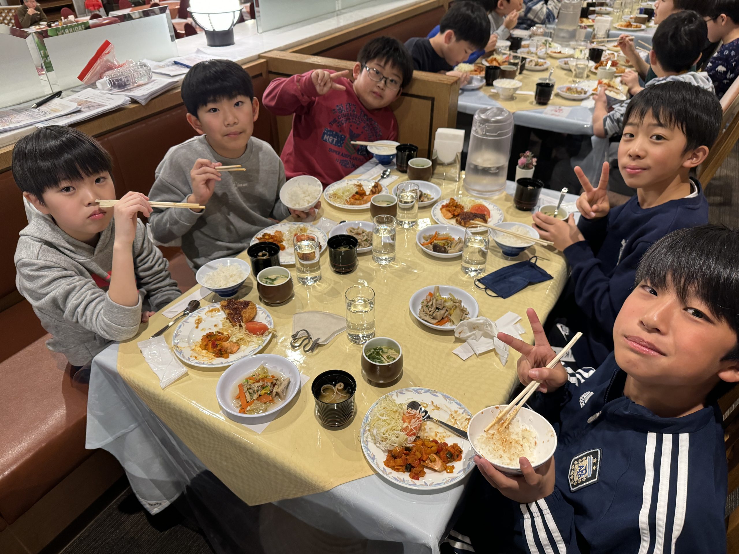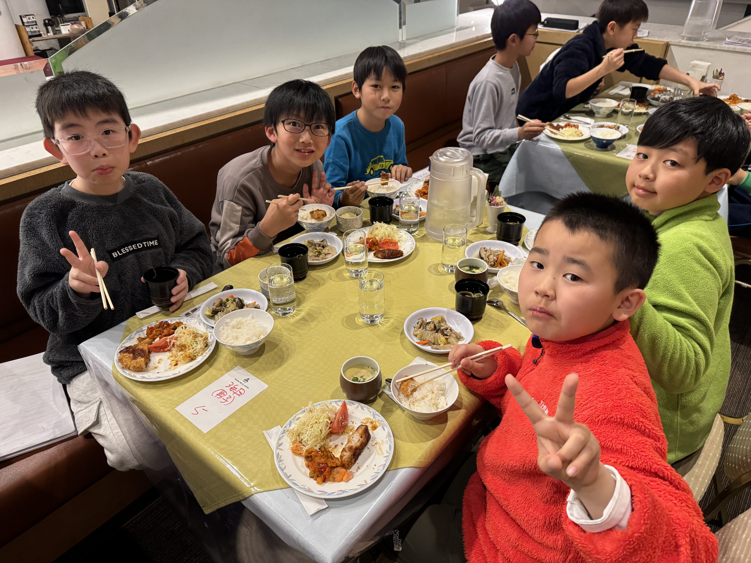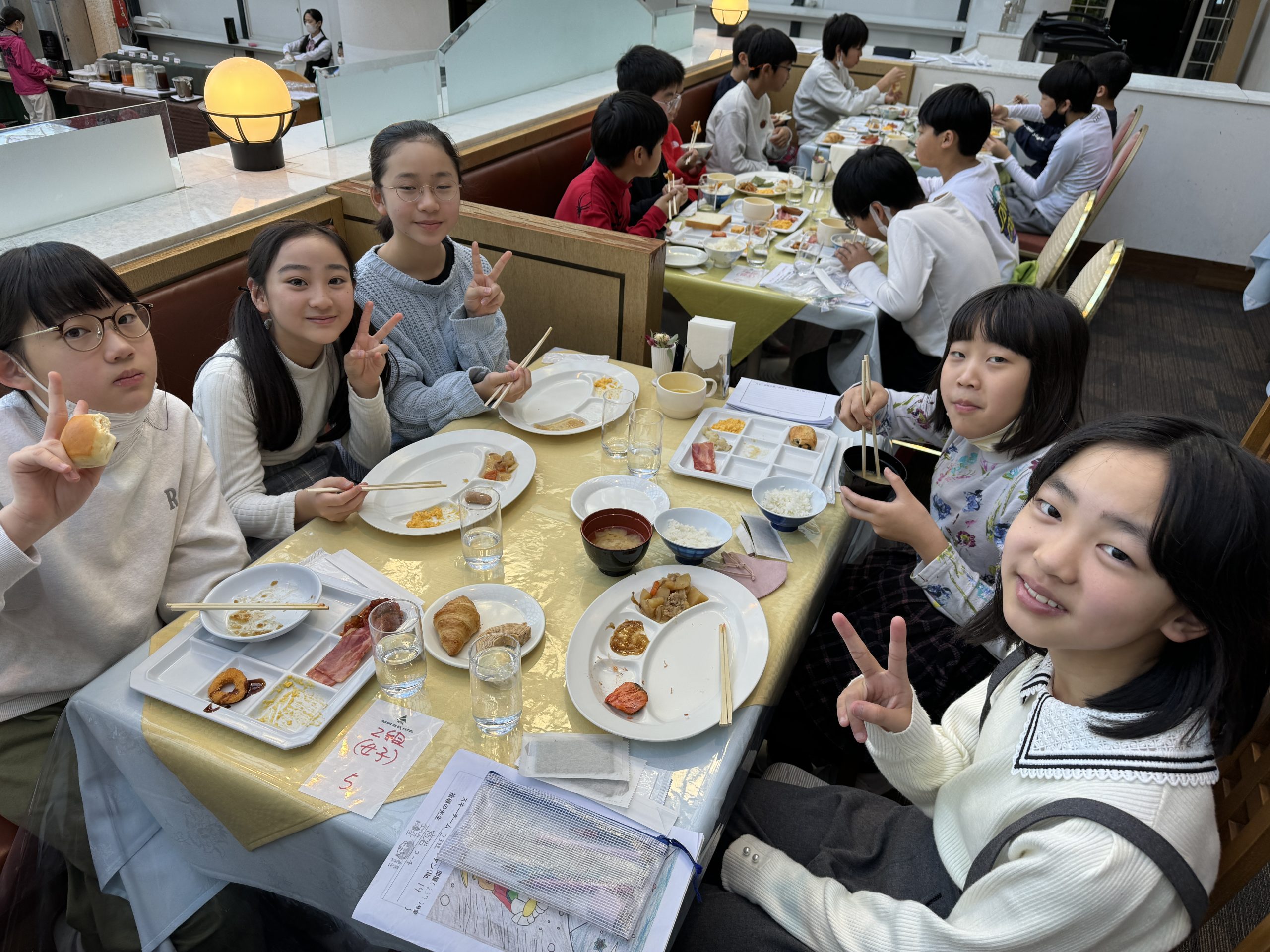 今日の朝食はビュッフェ形式です。自分で食べたいものを選んで、先生たちが取り分けてくれました。たくさん食べて、1日の練習に備えます。