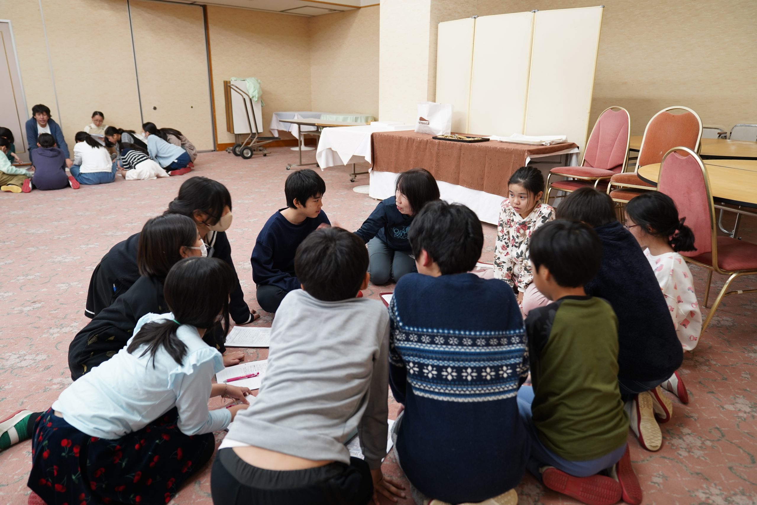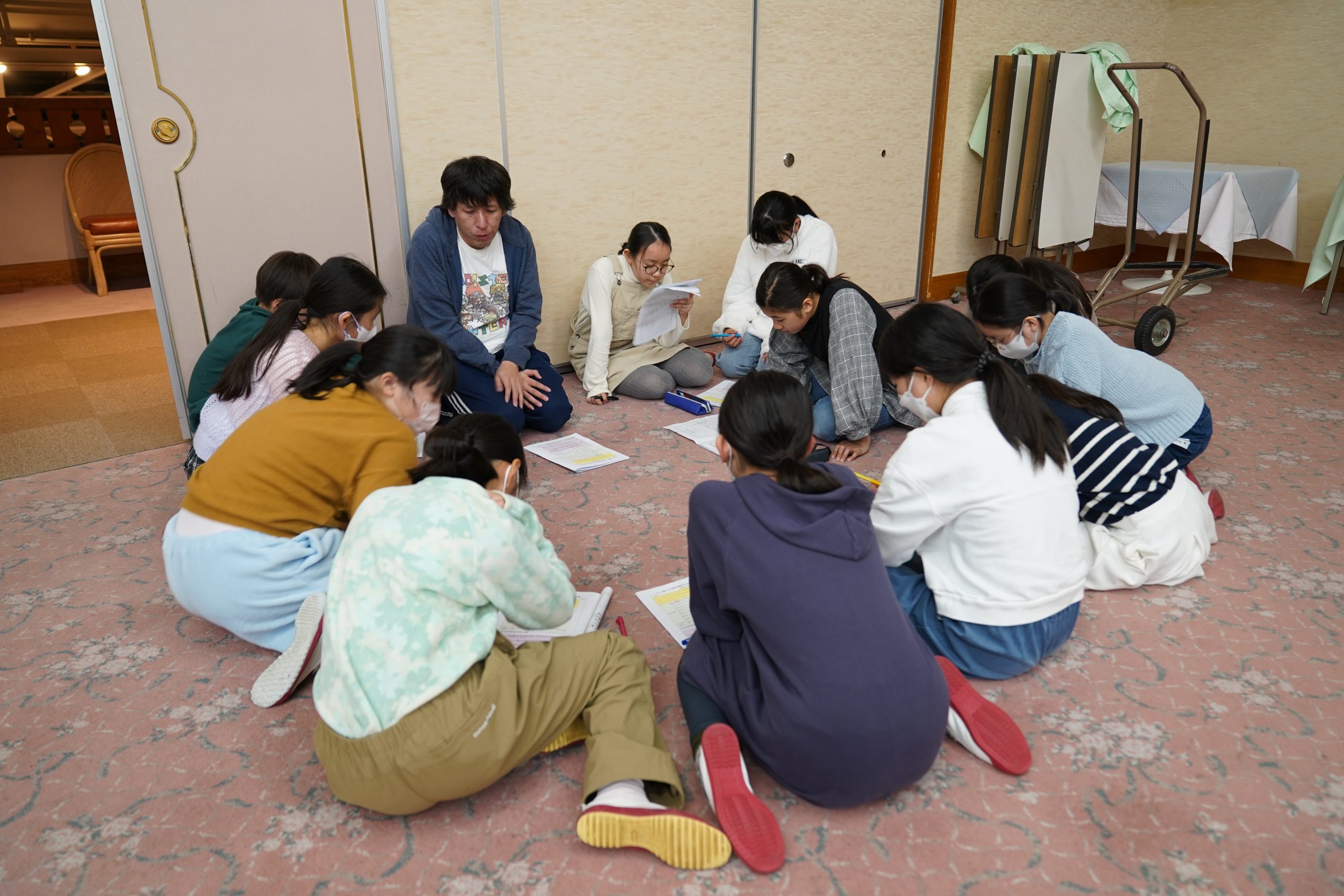 食事の後は、各チームごとに分かれてスキーのミーティングを行いました。