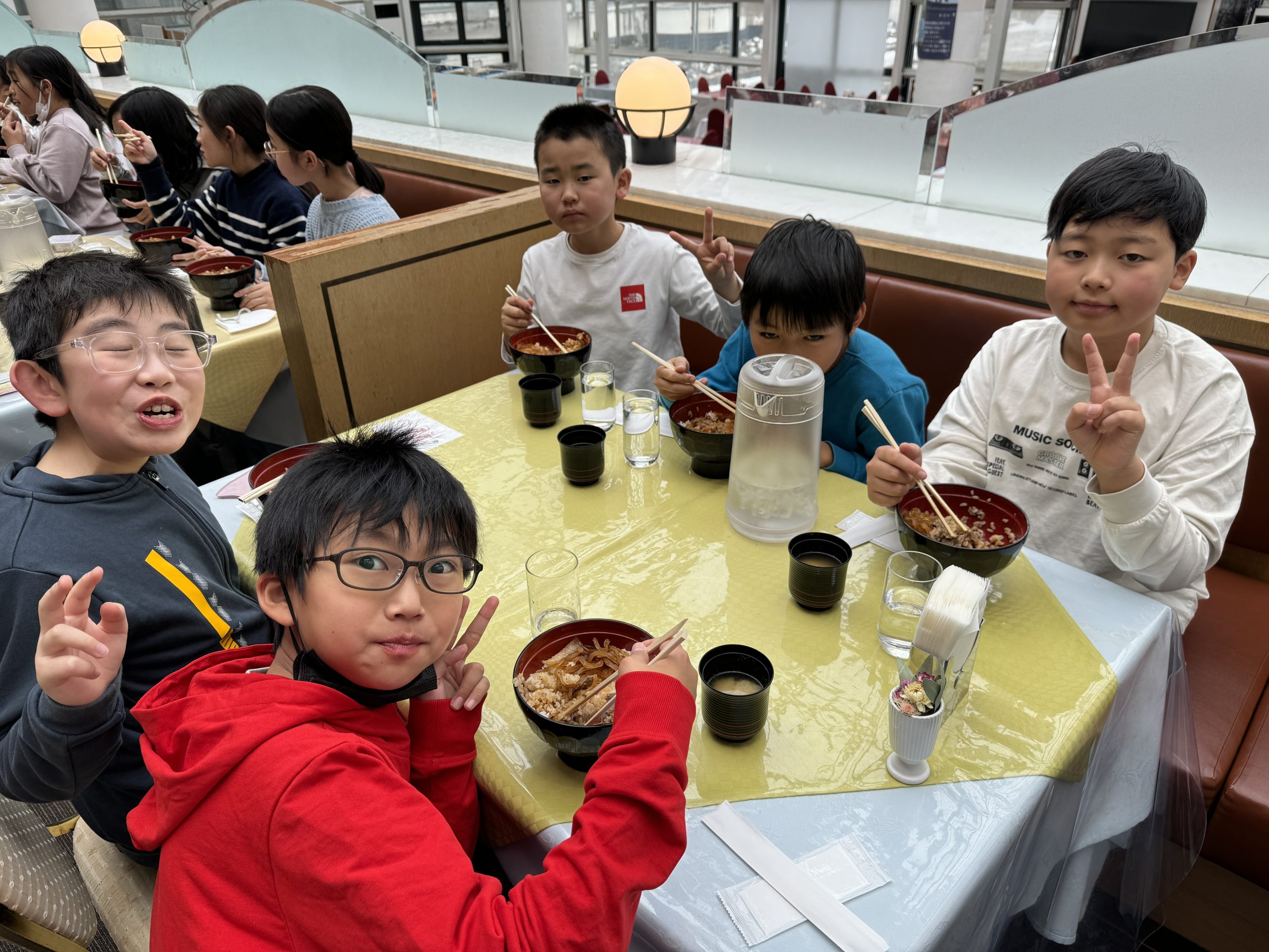 スキー学校最後の食事は牛丼でした。ホテルでの食事は本当においしく、子どもたちの練習の支えとなってくれました。