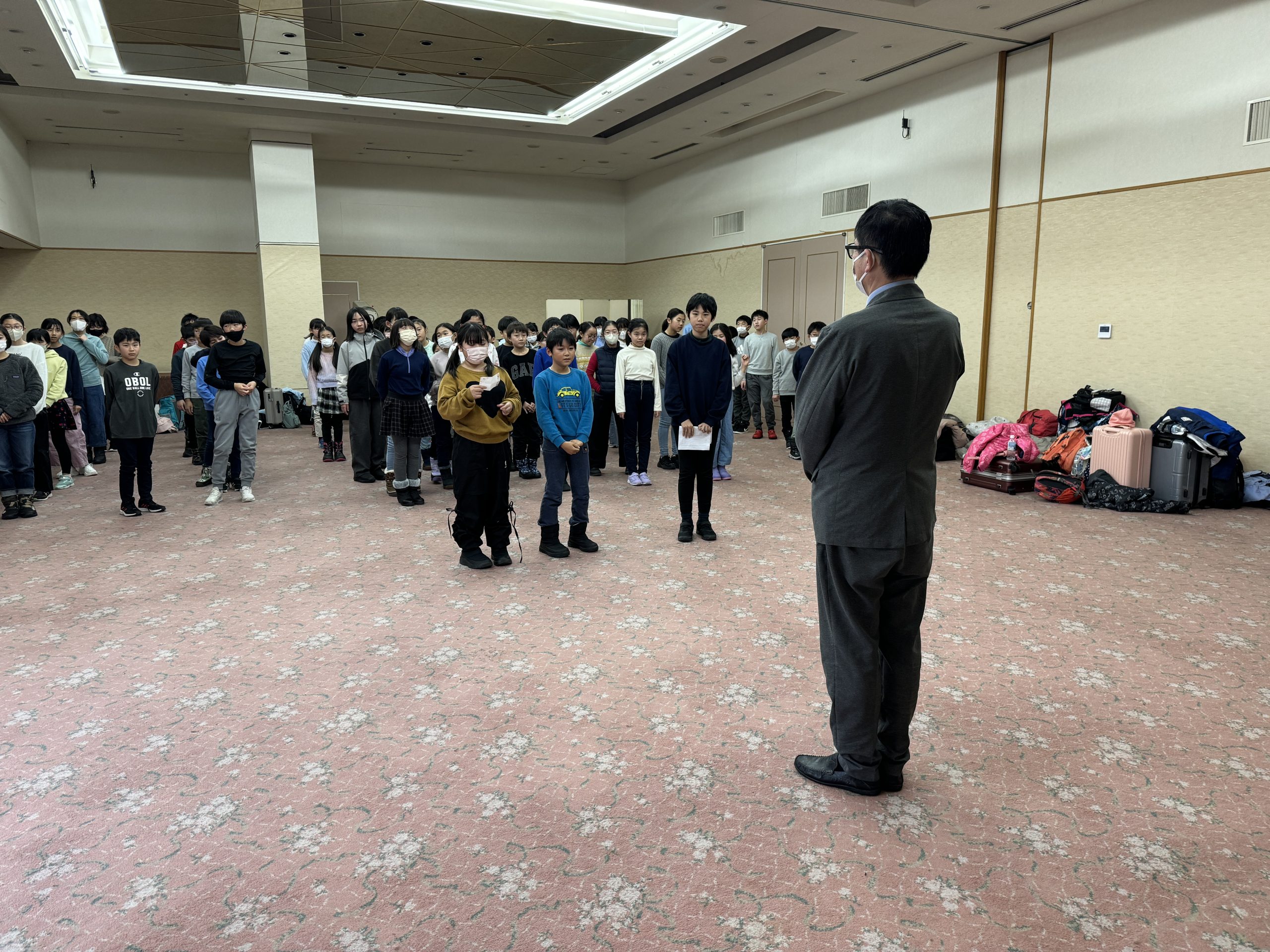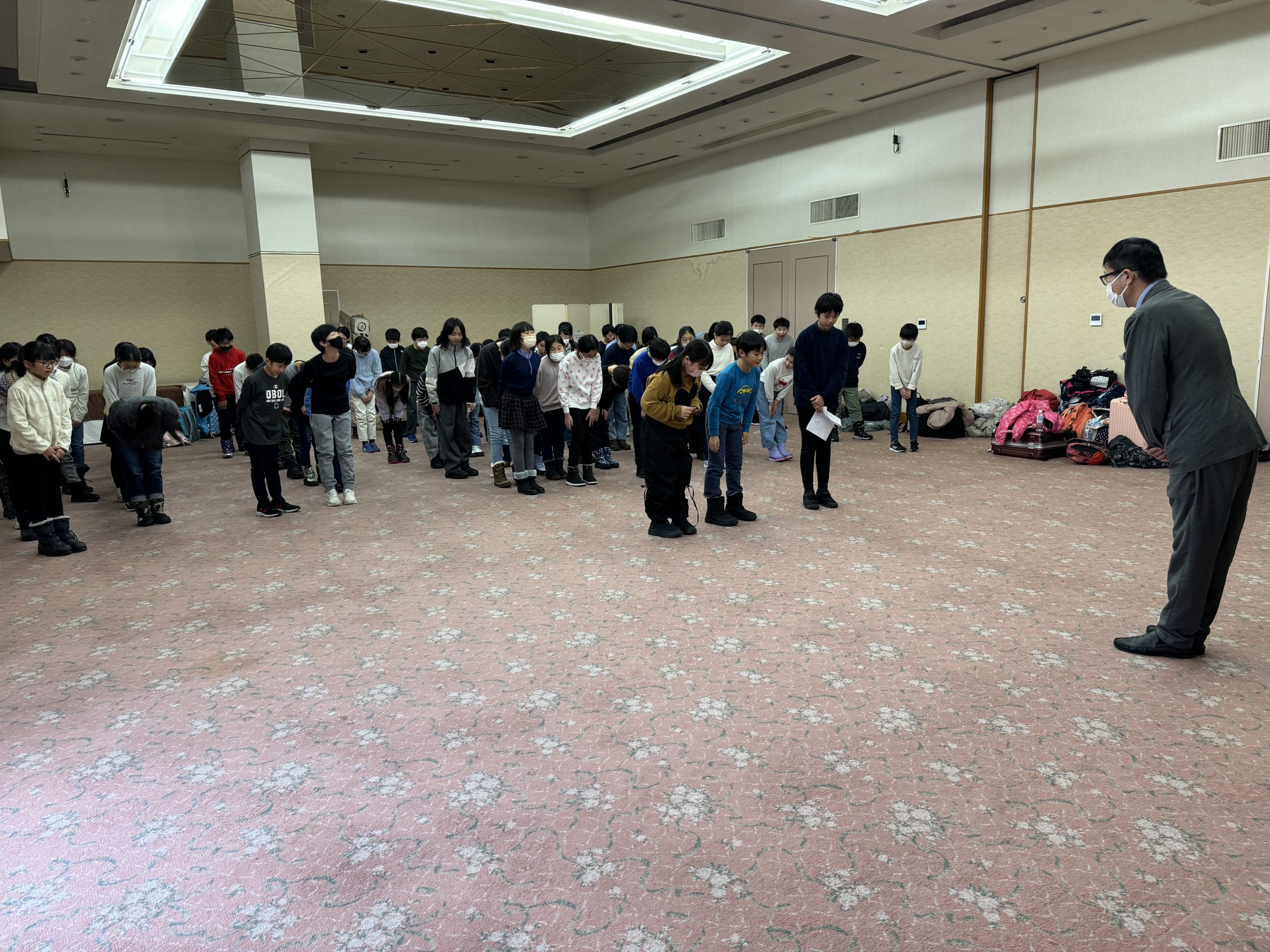 そして全員集まって閉校式。スキー学校の締めくくりです。お迎えに来てくれた保護者の方、引率の先生へのお礼を伝えました。
