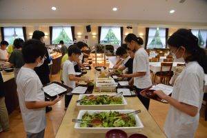 本日の朝食はビュッフェ形式です。自分で食べるものを選んで、朝食の用意をします。