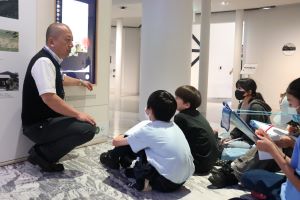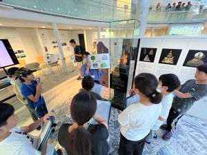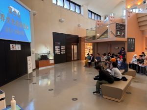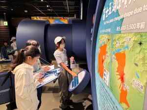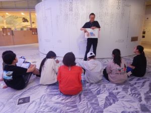 ホテルでの昼食をすませて、30分ほどバスで移動をし、午後の見学地である「富士山世界遺産センター」に到着です。南館を案内してくださる学芸員さんに挨拶をして見学をスタートさせました。