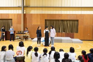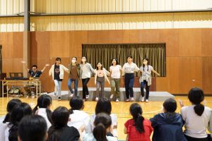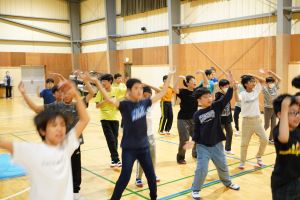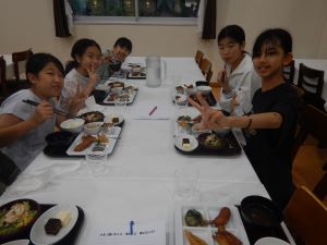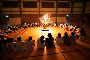 夕食後はホテルの体育館を借りて、お待ちかねのキャンドルファイアーです。係の子どもを中心に、キャンドルを囲んでスタンツを披露したり、みんなで歌ったり踊ったりととても楽しい時間となりました。