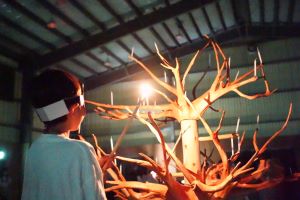 朝食後、雨が強めに降っていたので、青木ヶ原樹海のハイキングを1時間遅らせて行うことにしました。この時間を使って、今晩行われる、キャンドルファイアーでのスタンツの練習を各班で行いました。