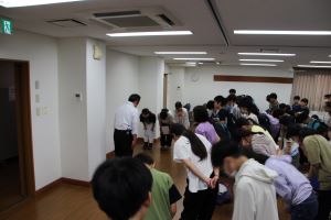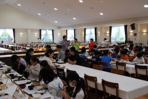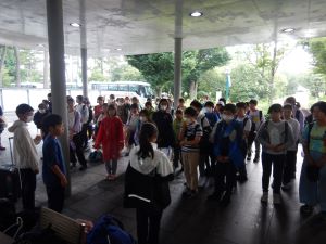 予定より30分ほど早く女子大キャンパスに到着。お迎えに来てくれた保護者の皆様と一緒に富士山自然体験学校の閉校式を行いました。