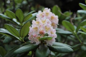 午前10時、予定通り5合目に到着。御中道を案内していただくガイドさんに挨拶をして御中道巡りの開始です。御中道に入ると満開の「ハクサンシャクナゲ」がみんなを迎えてくれました。