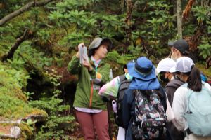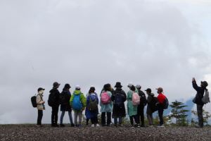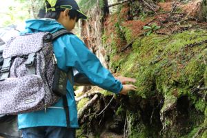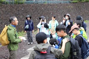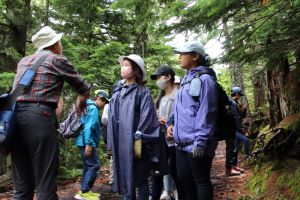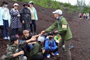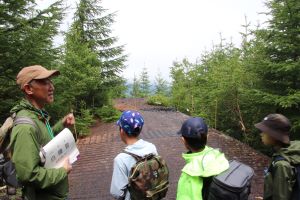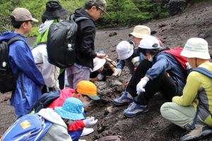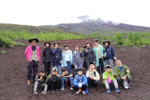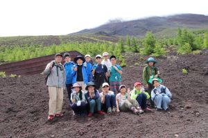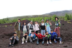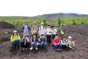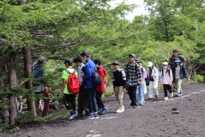 御中道では、富士山が噴出したスコリアを観察したり、森林限界の様子を観察したりしながらハイキングを楽しみました。富士山の5合目の特殊な自然環境がつくるその景色は、子どもたちを強く引き付け、ガイドさんの説明をしっかりと聞きながら学習を深めることができました。