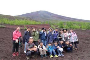 各見学チームごと、富士山の頂上をバックに記念写真を撮りました。