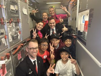 カンタス航空の客室乗務員の皆様は、英語が分からない子どもたちにとても親切にしてくださり、