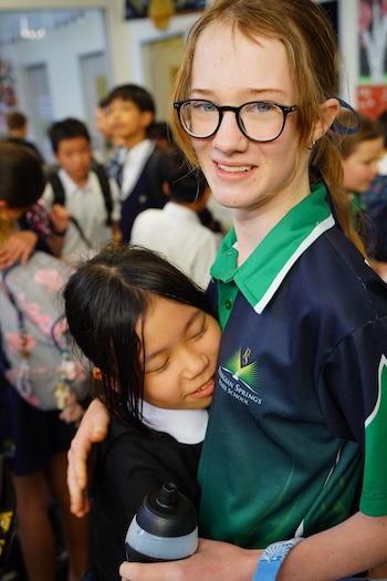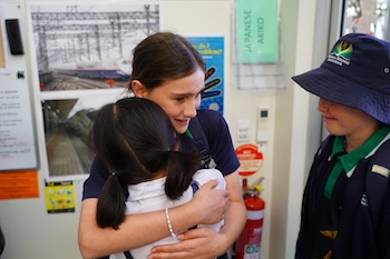 「手紙書いてね!」とハグをしながら伝え、別れを惜しんでいました。