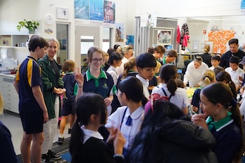 さよならパーティーの準備のため会場に移動すると、バディではないクラスの友だちが訪ねてきてくれました。