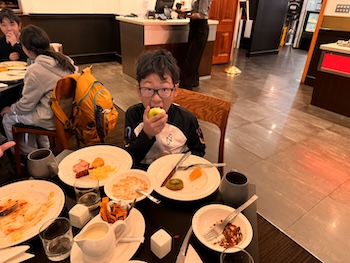 その方はなんと2018年と2019年にホストマザーをしてくださったPSSSの保護者の方で、2019年には娘さんを相模にホームステイに送り出してくださったFishさんでした。PSSSの近くを通ったら小学部の制服を見かけたので、もしかしたらと思って機内で声をかけてくださいました。