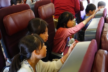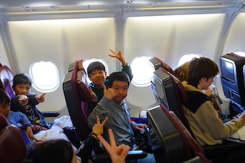 座席に座っていると、「先生、先生!」と日本語で客室乗務員の方に話しかけられました。