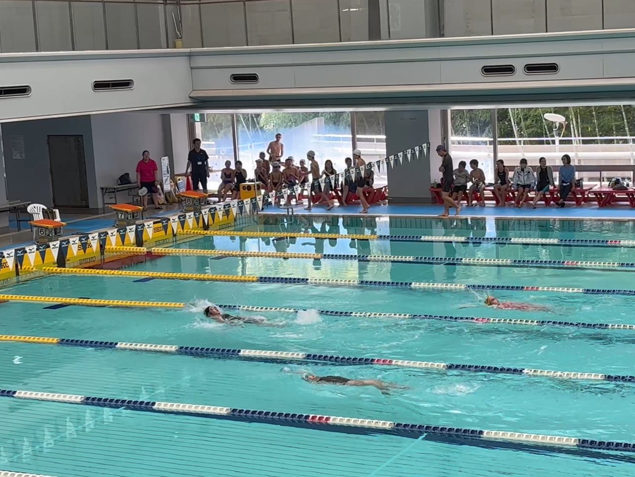 会場となったのは、横浜市都筑区にある横浜国際プールのサブアリーナプールです。自由形、平泳ぎ、背泳ぎ、バタフライ、リレーを、25m、50m、100mの長さでタイムを競いました。