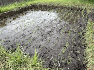 子どもたちが泥だらけになりながら代掻きを一生懸命頑張ったおかげで、田んぼの泥は細かくなり、均平された田んぼになりました。