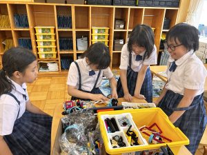 組み立て技術の練習のために、競技用のドライビングベースを組み立てました。いくつかのパーツに分かれているため、チームワークを生かし、並行して作業を行ないました。そして、競技用ドライビングベースが完成しました。コーディングをして、動かすと「すごい滑らか!!」と、その動きのよさに感動の声が上がりました。ドライビングベースの性能が上がり、ロボット競技への挑戦意欲が高まりました。
