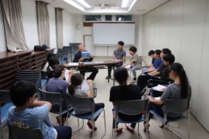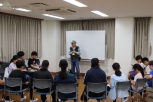天気が良ければ、午前中は青木ヶ原樹海のハイキングとコウモリ穴の見学をする予定でしたが、雨を考慮してホテルにガイドさんを招いて、講義形式で青木ヶ原樹海の成り立ちを中心に解説してもらいました。