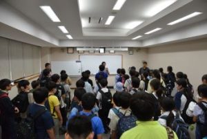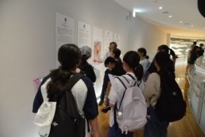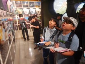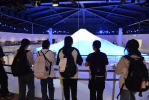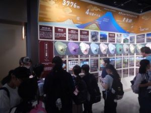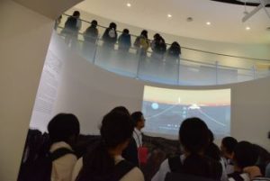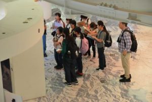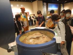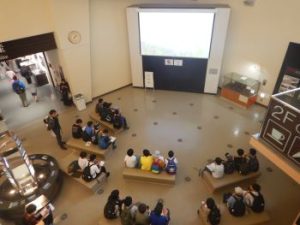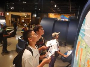 世界遺産センターの見学は、南館と北館に分かれて行いました。南館では、ガイドさんと一緒に富士山周辺に点在する構成遺産について学習しました。昨日、訪れた河口湖フィールドセンターや忍野八海も構成遺産の一つであることを確認でき、改めて富士山周辺の文化について学びを深めることができました。