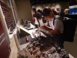 北館では、理科教員の指導のもと、ワークシートを使って改めて富士山の自然について確認を行いました。北館の資料展示はとてもよくまとめられていて、子どもたち一人ひとりの力で、しっかりと理科の学習を深めることができました。