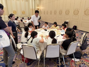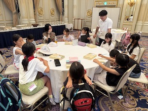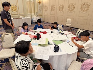 2日目は5時半からの「朝自習」からスタートしました。早い時間の自主参加の朝自習ですが、小学部の子どもたちも10人ほどの子が参加し、新聞を完成させようという気持ちを感じることができました。