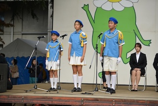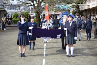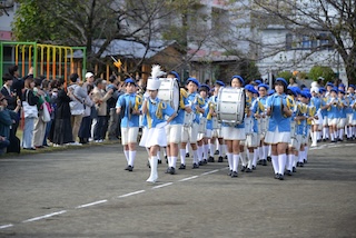 開会式が終わって、学内パレードを行いました。パレードは4年生から6年生の児童が参加します。初めて参加した4年生は、一生懸命リコーダー演奏を頑張っていました。